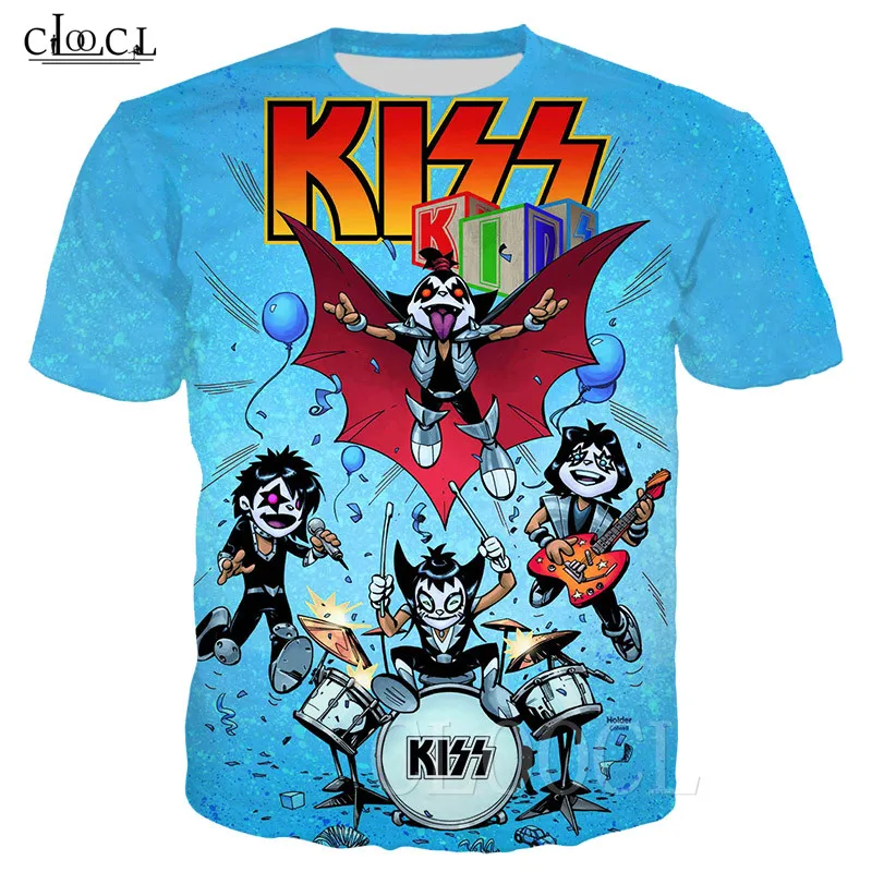 Новинка 2021, стильная металлическая футболка с рок-группой Kiss Band, женская и Мужская классическая уличная одежда с 3D принтом и коротким рукавом, Свитшот со звездами, топы для пар