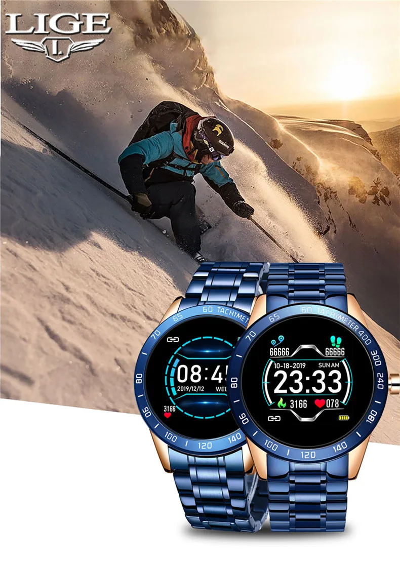 LIGE 2020 новые мужские умные часы, светодиодный экран, монитор сердечного ритма, артериальное давление, фитнес-трекер, спортивные часы, водонепроницаемые умные часы + коробка