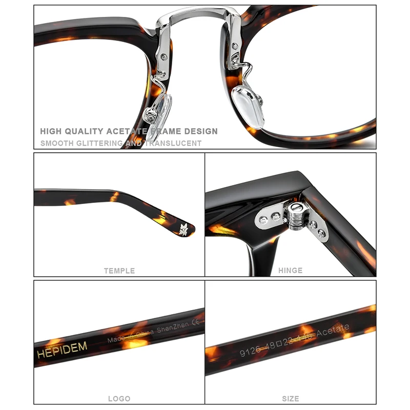 HEPIDEM Очки для мужчин и женщин из ацетатной оправы из ацетата, винтажные квадратные очки в стиле ретро, по рецепту, 9126