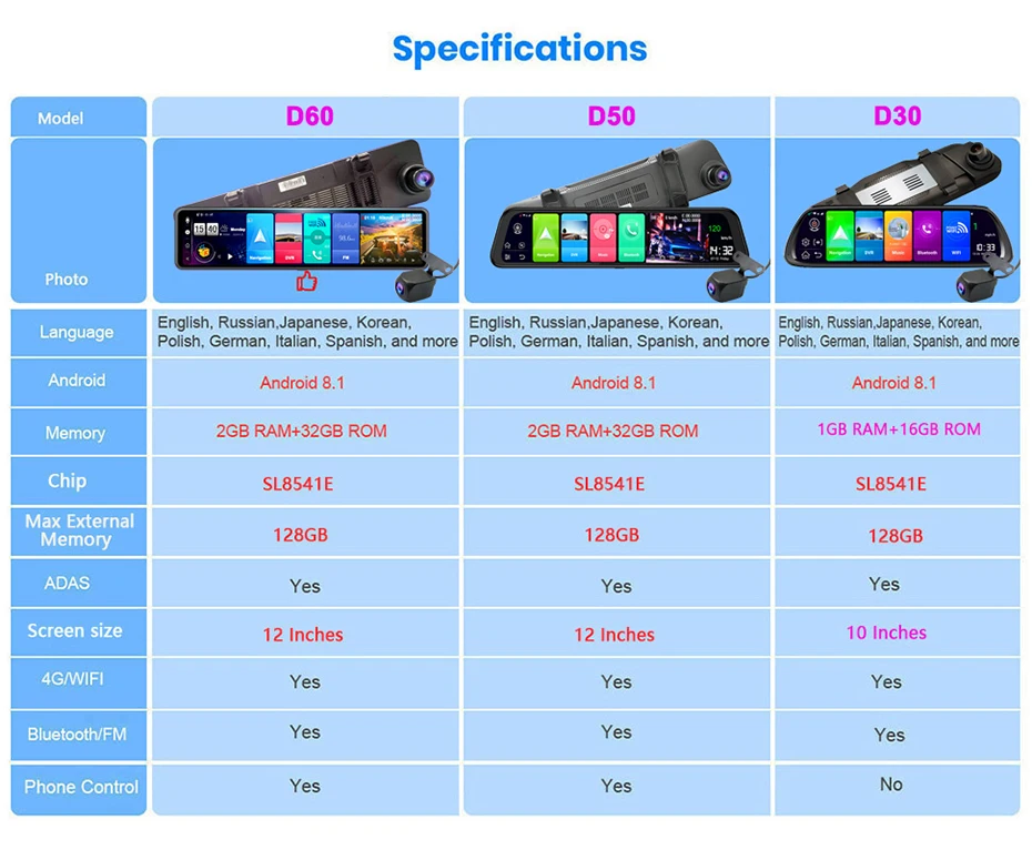 D30 не включает линию buck, D50 и D60 включают линию OBD buck.
