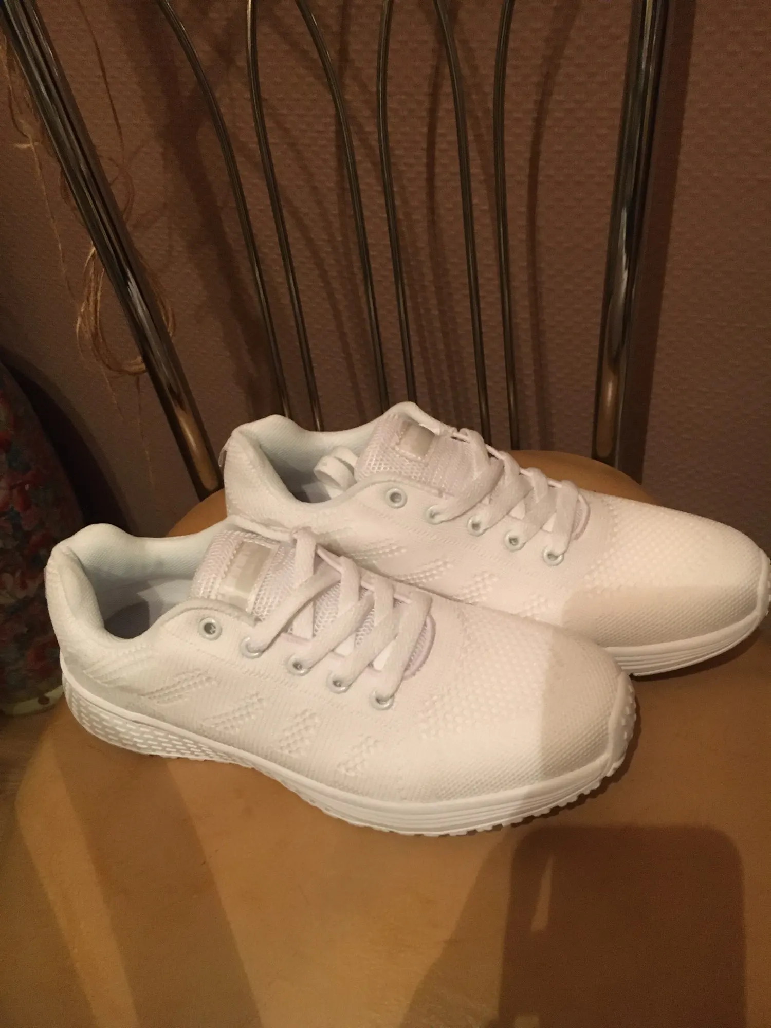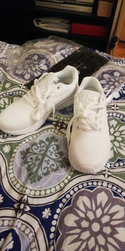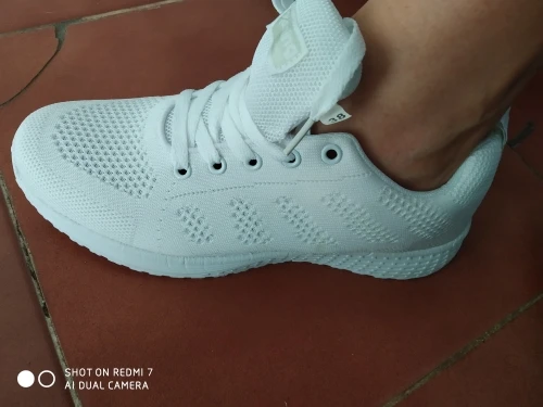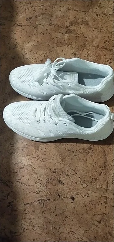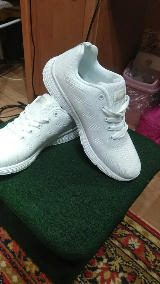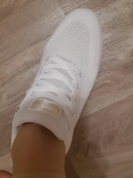 лёгкие белые летние кроссовки. на свой 38-39размер по отзывам заказала 40 размер. самый раз, впритык. на лето с тонким носком или вообще без него.