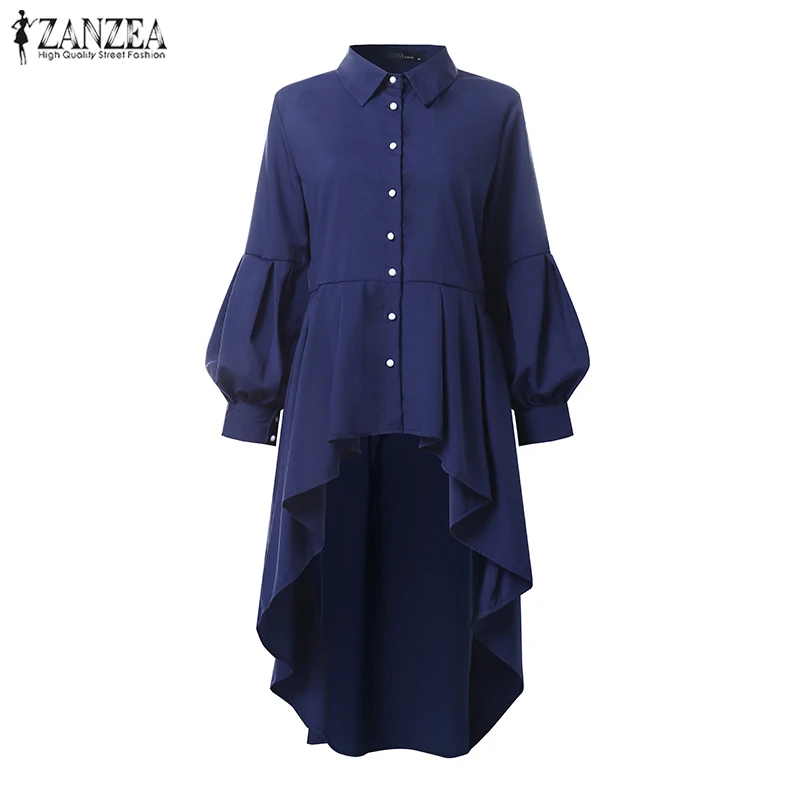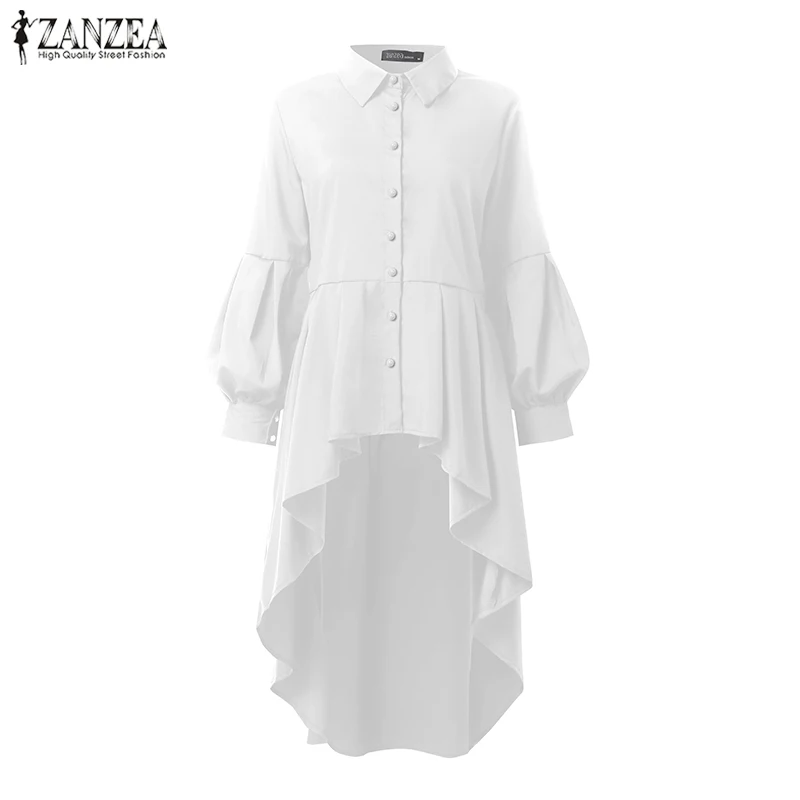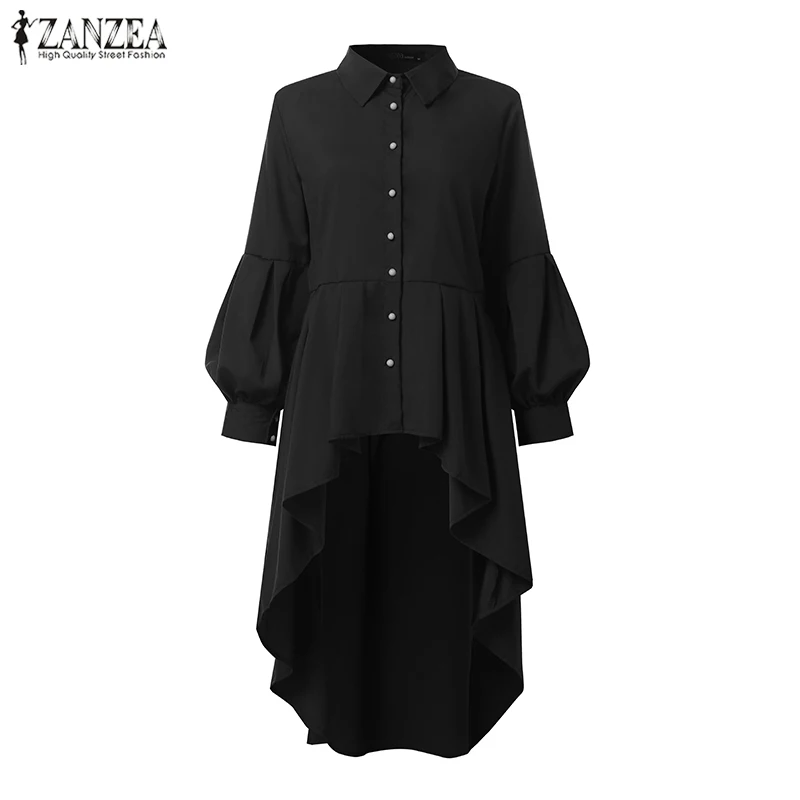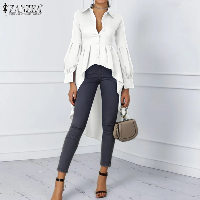 Модная блузка с пышными рукавами, асимметричная, ZANZEA, летняя, же...