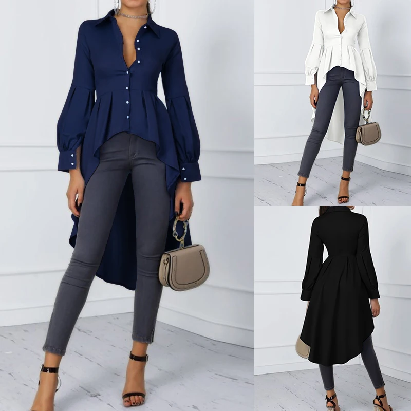 5XL женские офисные Блузы свободного покроя сторона Разделение Blus...