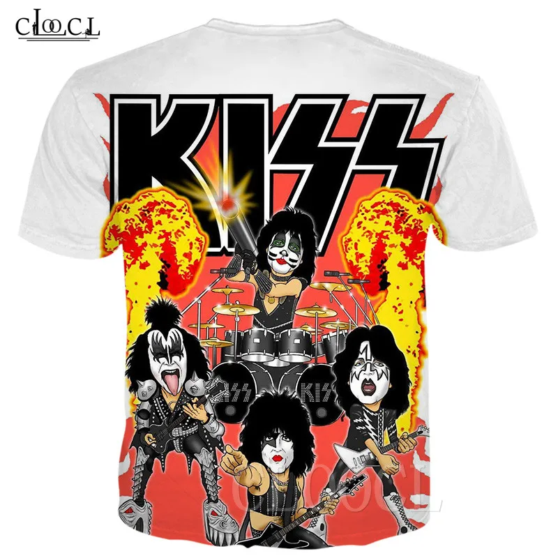 Футболка KISS Band в стиле Харадзюку для мужчин и женщин, Повседневная модная рубашка с 3D принтом рок-поцелуй, уличная одежда с коротким рукавом, спортивный пуловер