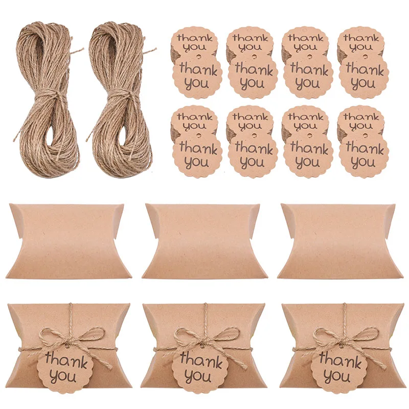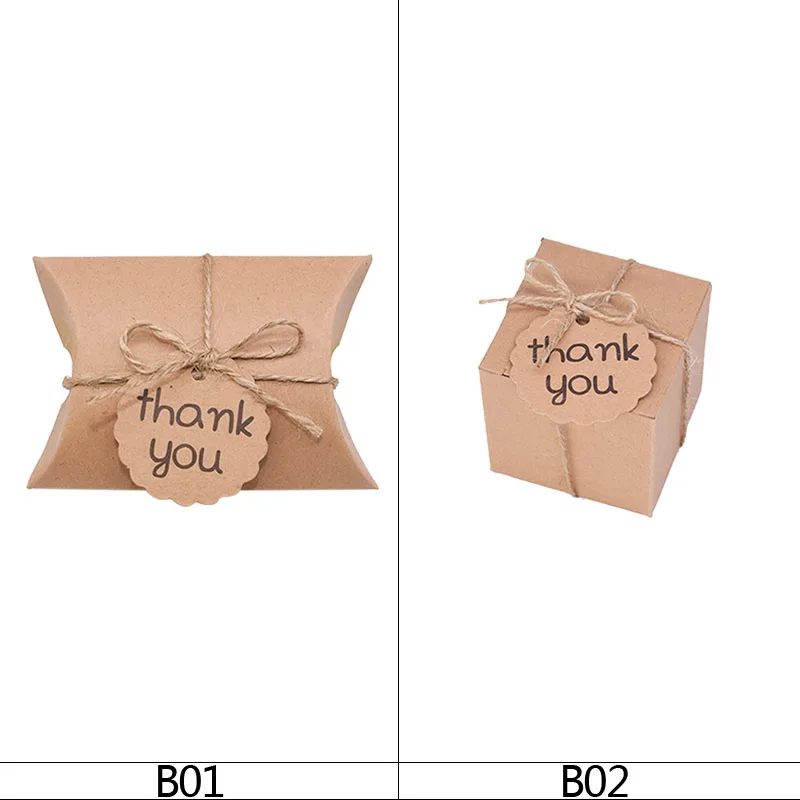 20/50 шт крафт-бумаги подушки коробки конфеты свадебные вечерние коробки для подарков с благодарностью бирки день рождения партии дома поставки
