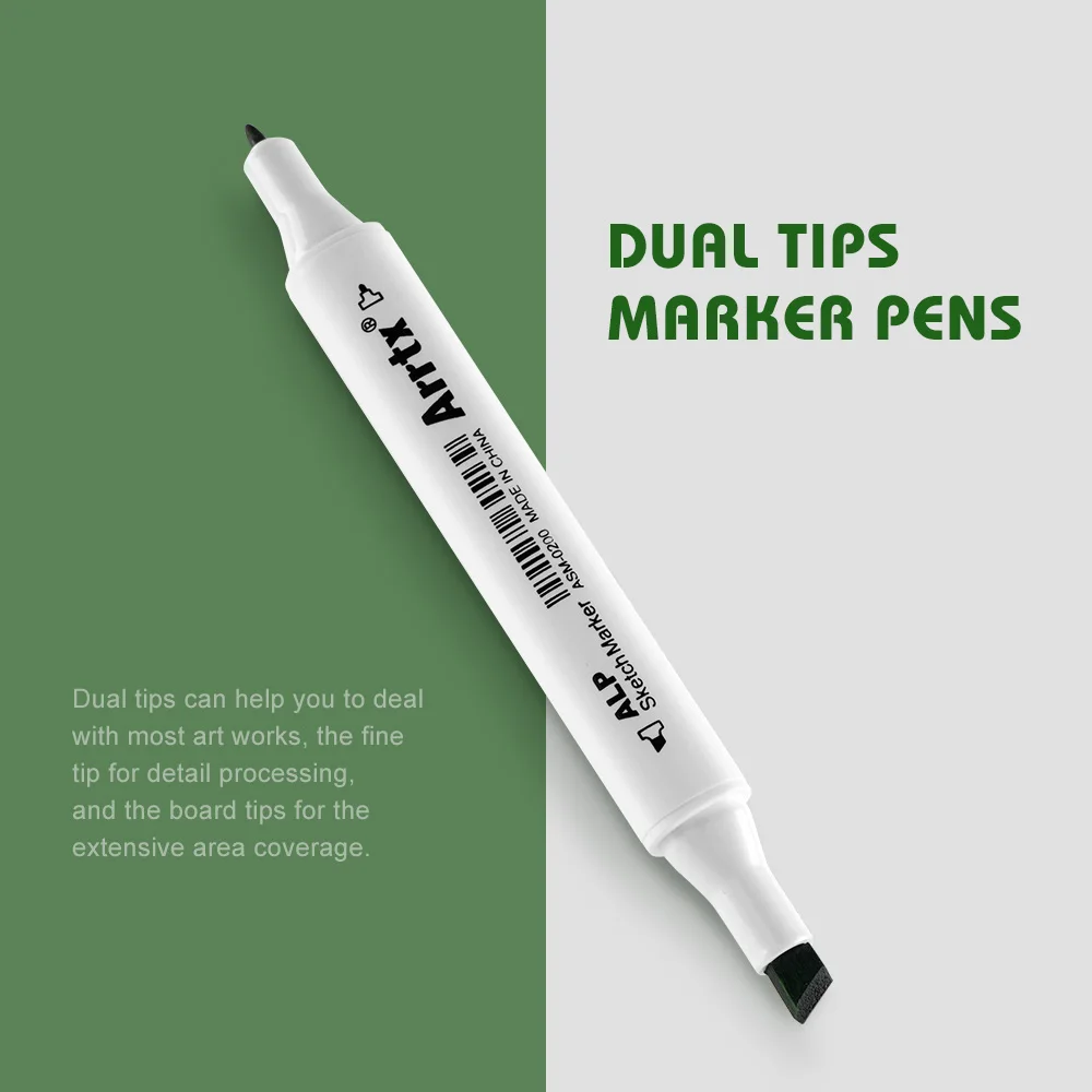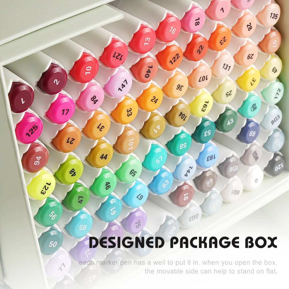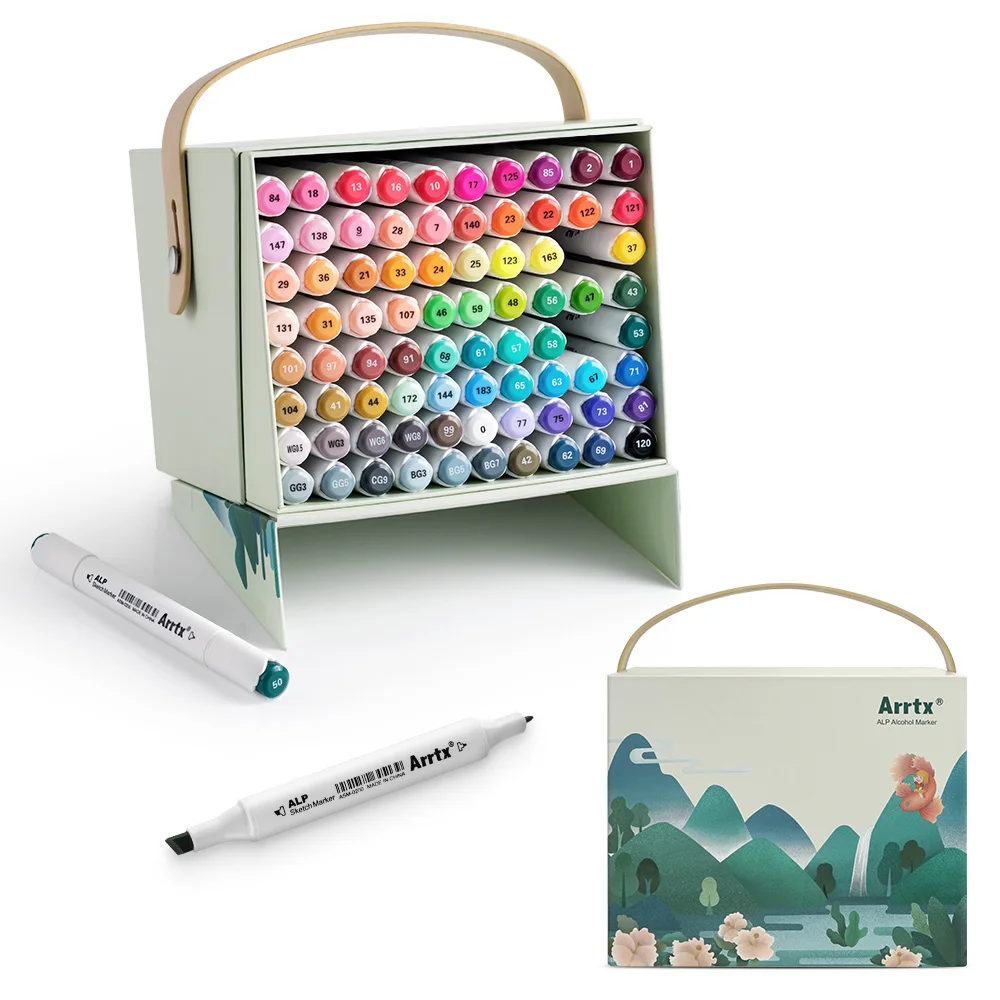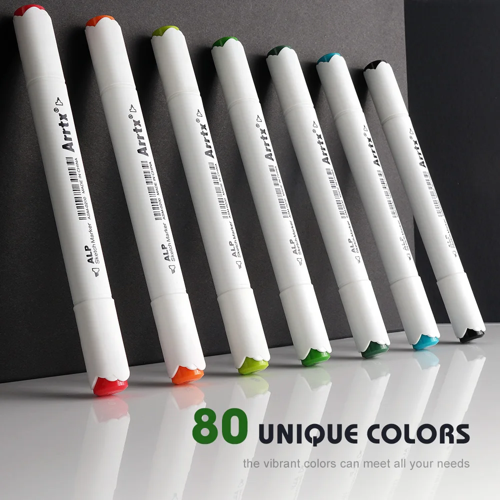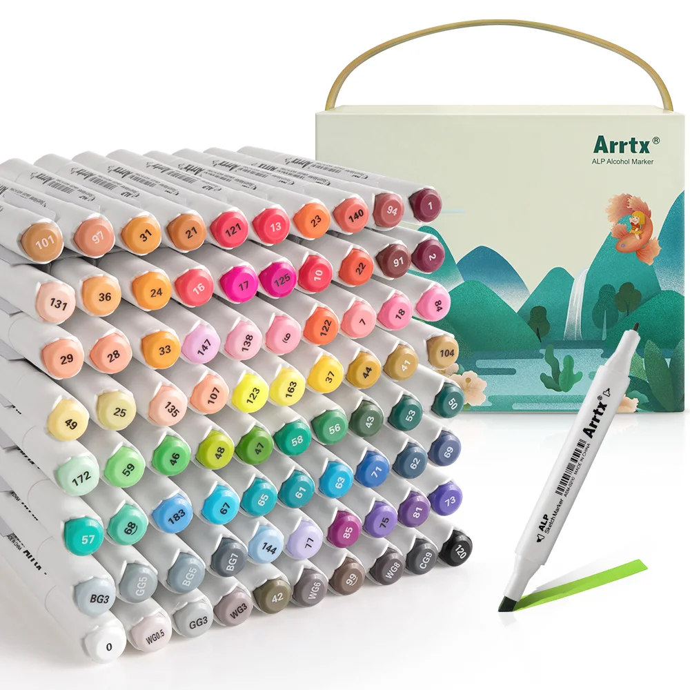 Спиртовые маркеры Arrtx ALP, 80 ярких цветов, Двойные наконечники, маркеры для рисования с многофункциональным футляром для переноски
