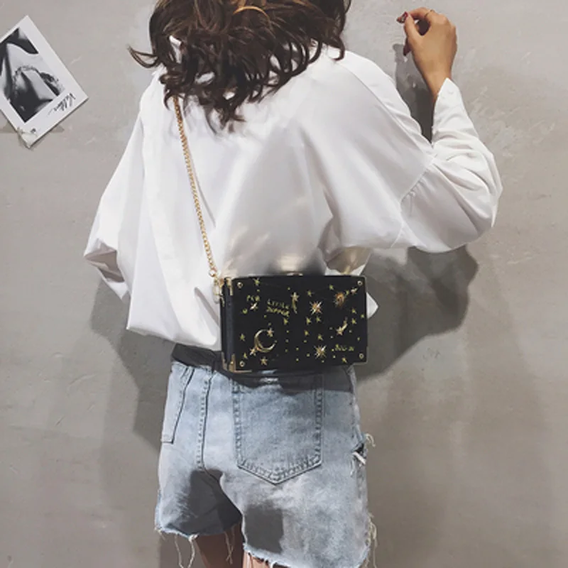 Женская сумка-почтальонка с принтом звездного неба, модный дизайнерский мессенджер на металлической цепочке, дамская модная шикарная Сумочка через плечо