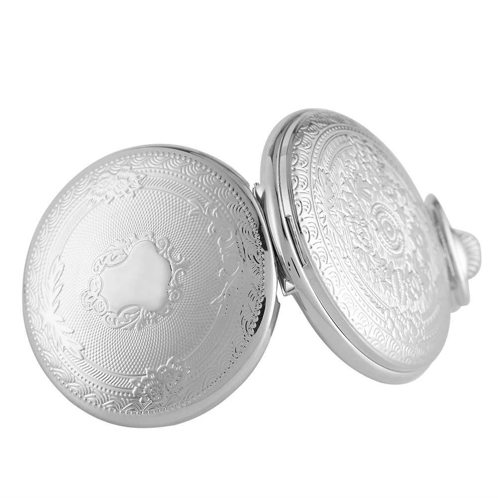 Часы карманные мужские, серебристые, грубая цепочка, кварцевые, с подвеской