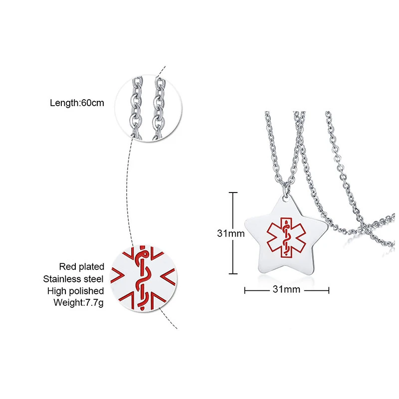 Медицинское ожерелье с подвеской для диабетиков из нержавеющей стали