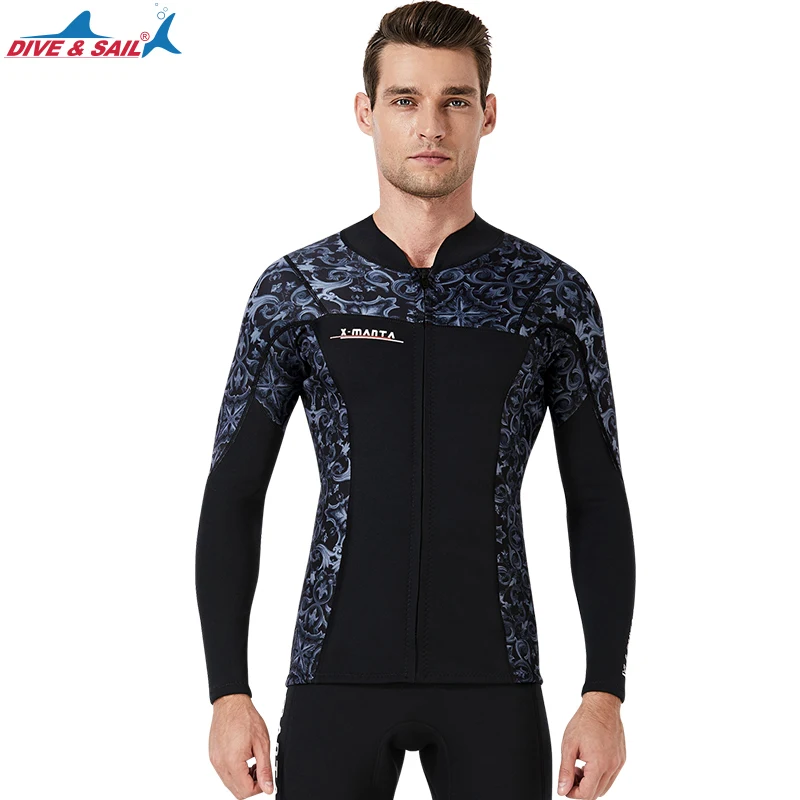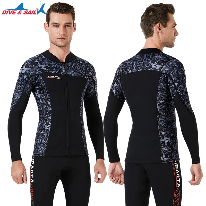 Мужские женские гидрокостюмы, верхняя куртка и нижние брюки, Неопреновые рубашки с длинным рукавом 1,5 мм и молнией спереди, леггинсы из двух предметов для подводного плавания