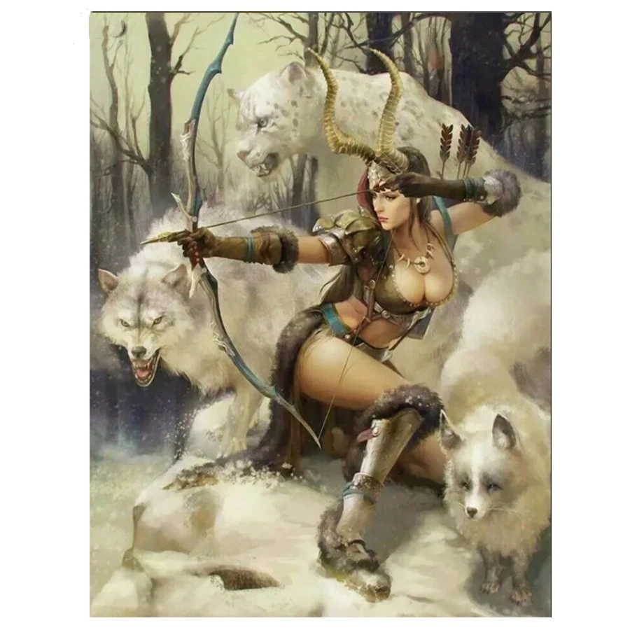 Картина из квадратных и круглых страз 5D "сделай сам", картина с изображением красавицы, волки, алмазная вышивка крестиком, домашний декор