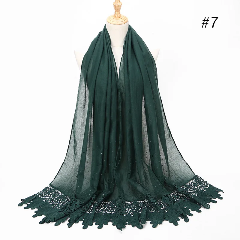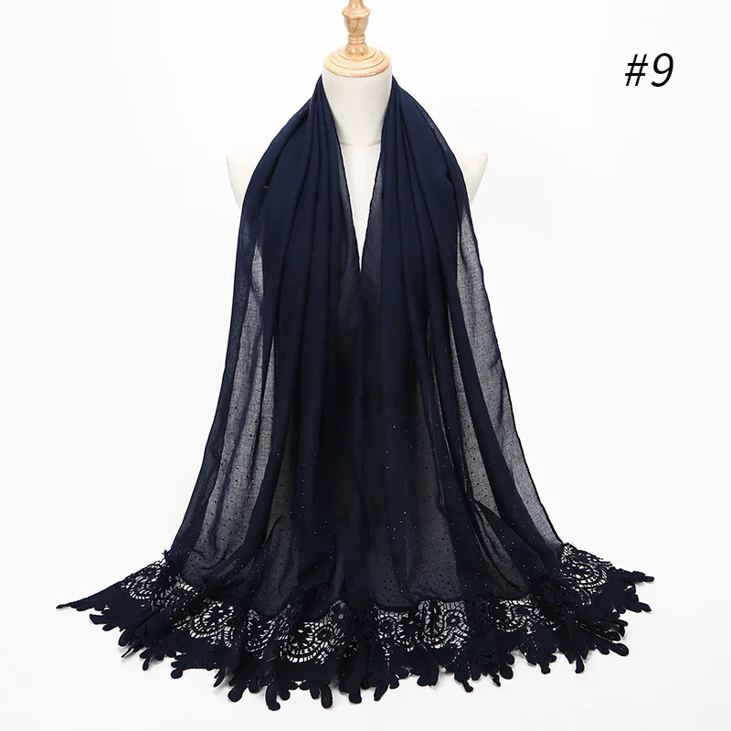 Женский простой хлопковый кружевной шарф, однотонный хиджаб, шали из фуляра, женский головной платок, мусульманский хиджаб, палантин, 2019
