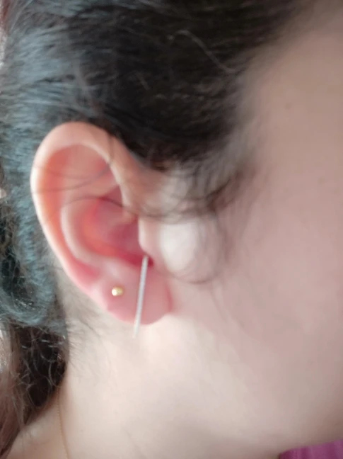 Товар прибыл. Описанию соответствует. Только видимо я плохо отзывы смотрела, и нижняя часть зачем такая длинная? И серьга сидит не так как хотелось. Хотя на моем фото получилось что не плохо выглядит. Но на деле сразу не попадает крючок верхний за раковину, а нижний очень длинный и торчит.