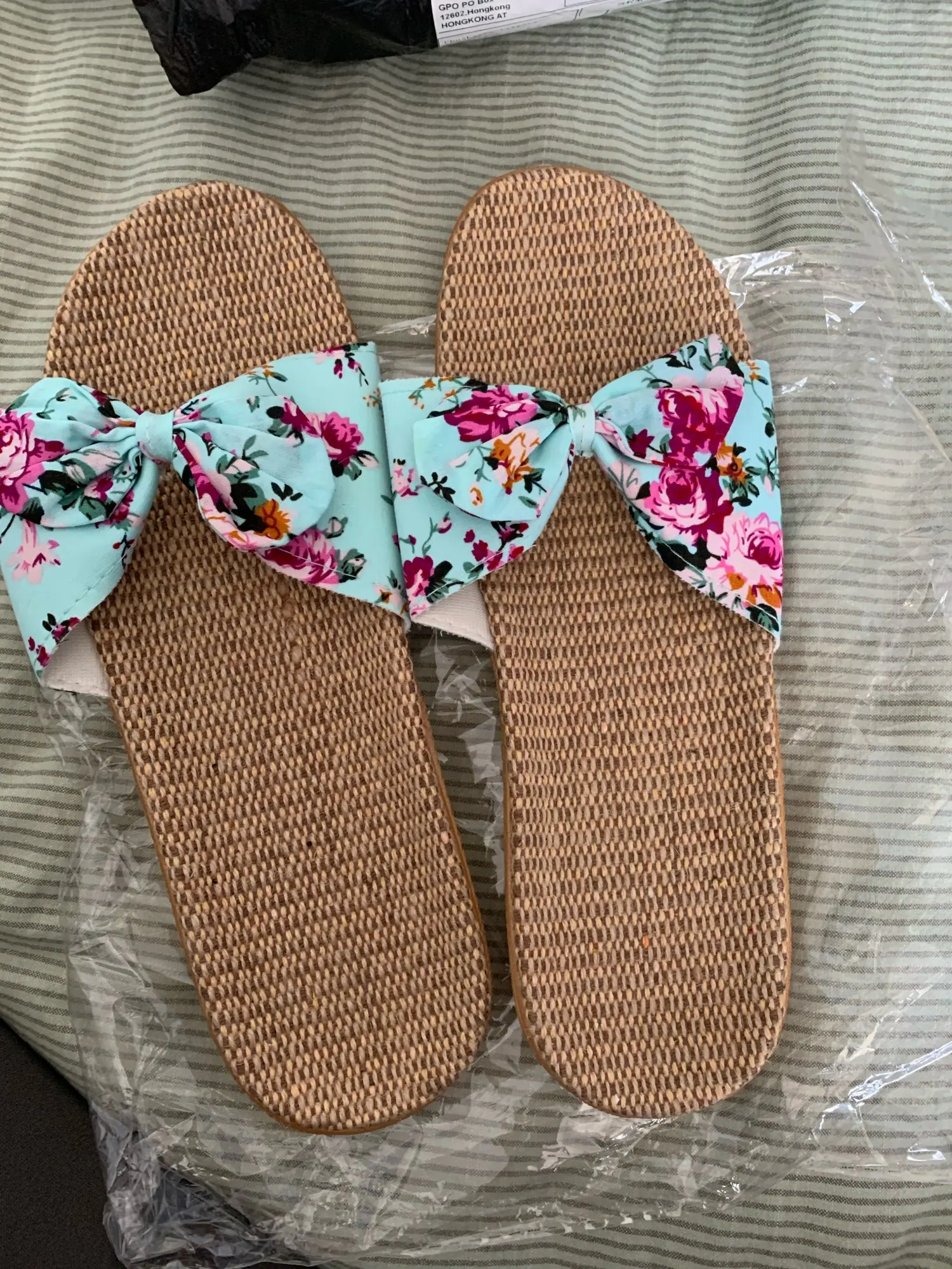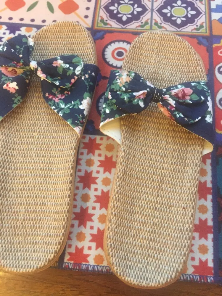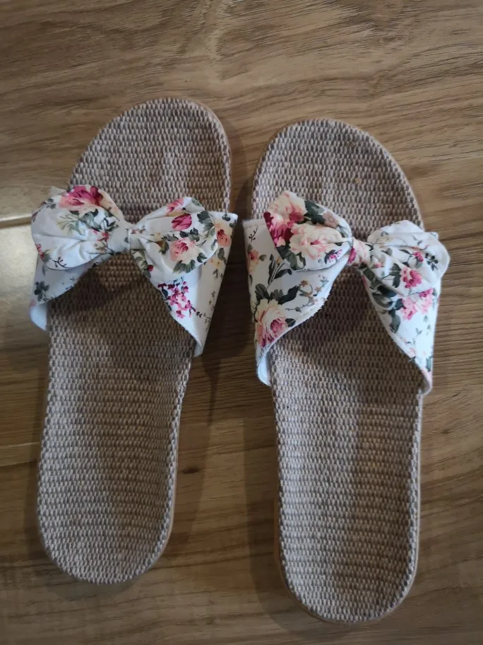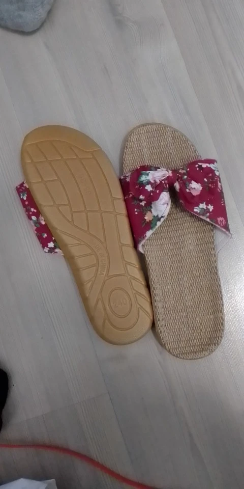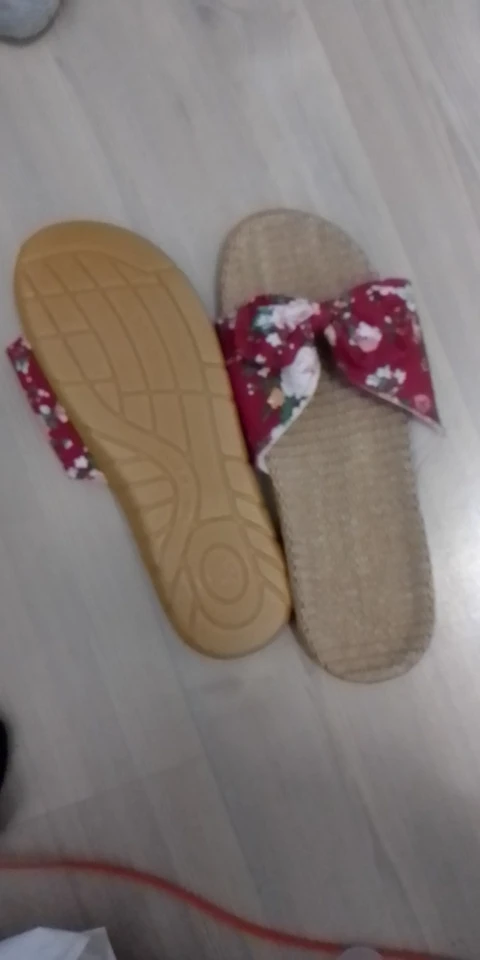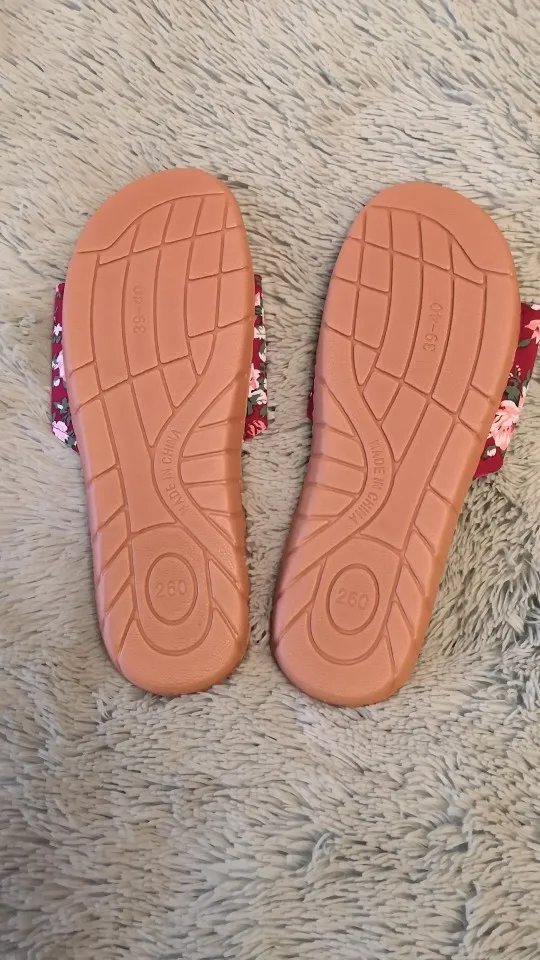 Хорошие тапочки, за такую цену просто замечательные. Пока не знаю как долго будут носиться, но пока мне всё нравится. Боялась, что нога будет сильно вперёд пролазить, но нет, этого не происходит. Размер написан на них 39-40, но на мой 38 размер прямо как раз, у кого размер больше могут быть маловаты. В общем, я довольна. Думаю, что буду ещё заказывать