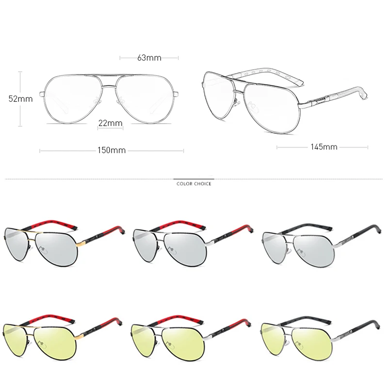 Солнцезащитные очки Мужские фотохромные, поляризационные алюминиевые, дневное и ночное видение, для вождения, большие размеры, желтые