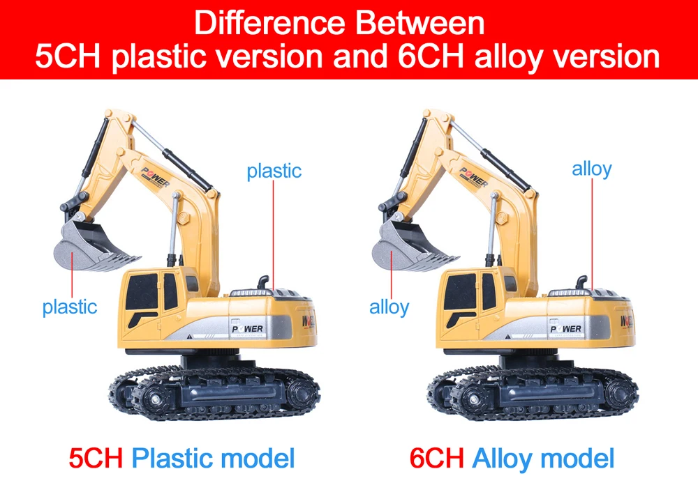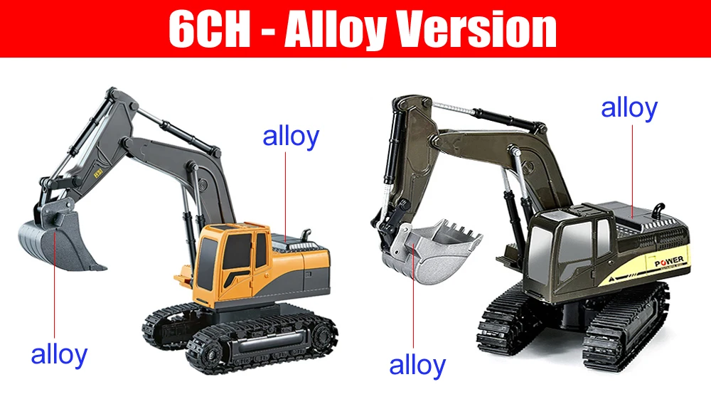 Игрушечный экскаватор, 2,4 ГГц, 1:24, 6-канальный Радиоуправляемый инженерный автомобиль из сплава и пластика, 6-канальный и 5-канальный RTR для детей, рождественский подарок