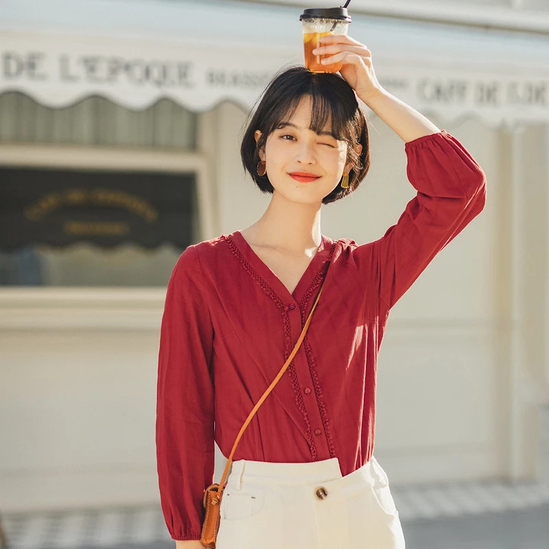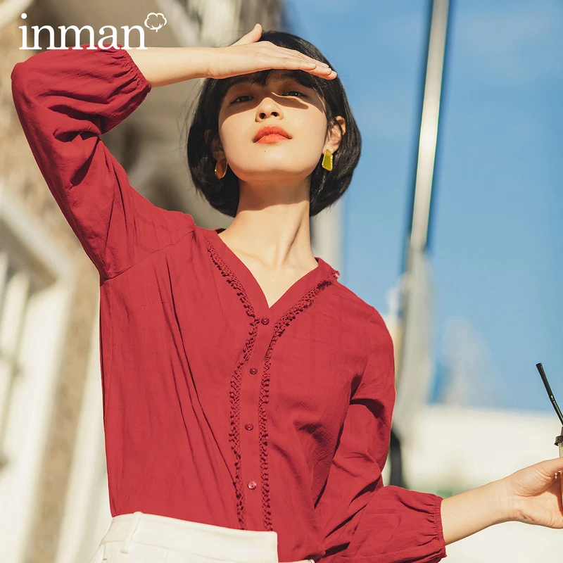 INMANвесенне-осенняя однотонная элегантная Свободная блузка с длинными рукавами в сдержанном стиле для отдыха