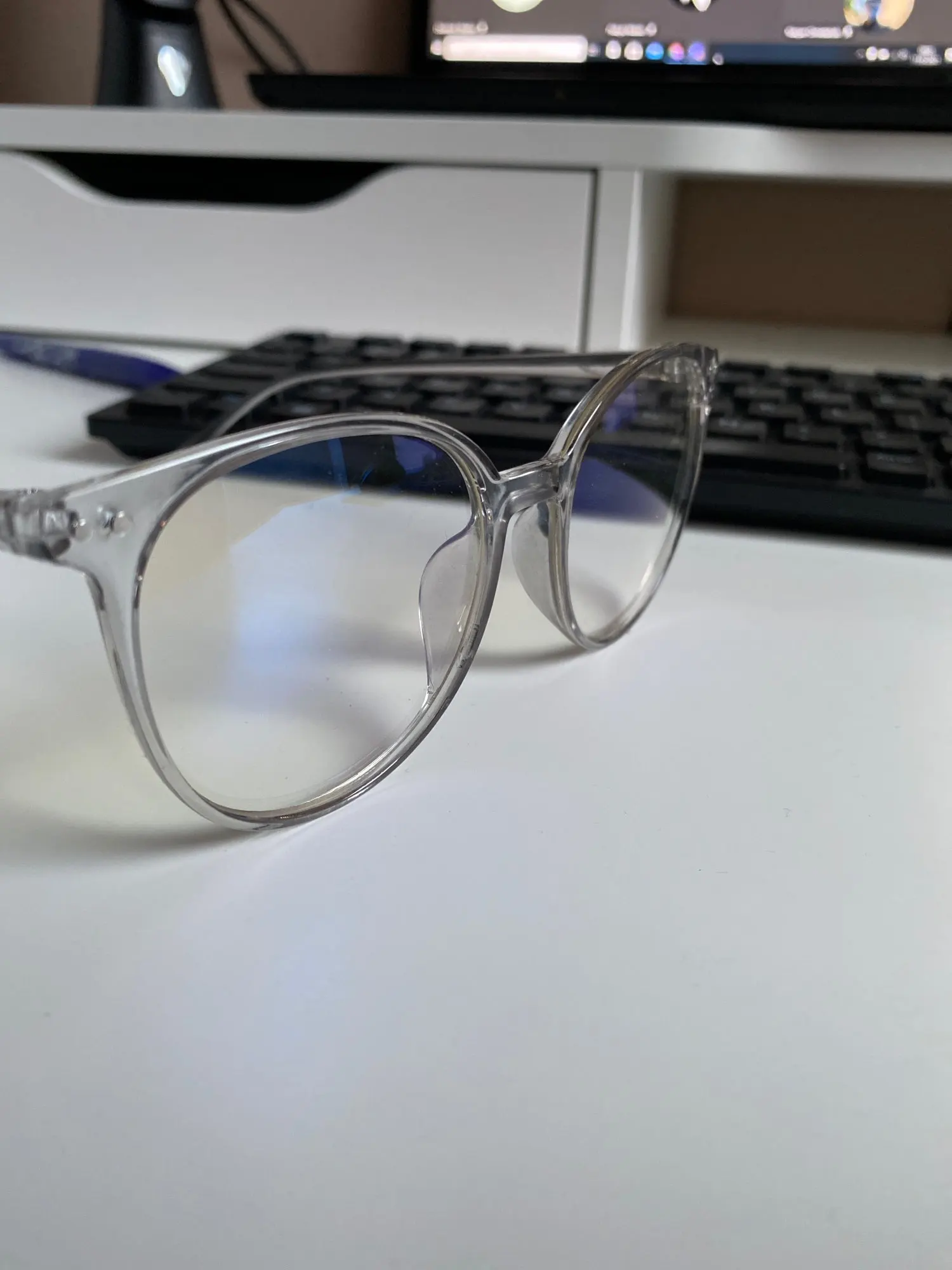 Выглядит как на фото. Они также очень легкие, поэтому ничего тяжелого. Они на самом деле не соответствуют форме моего лица, но я думаю, что это моя проблема. Я не могу сказать, блокируют ли они синий свет, но давайте надеемся, что они это сделают :)