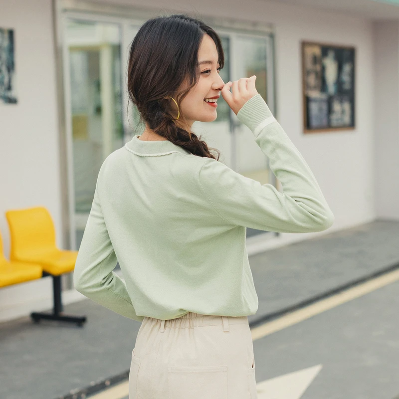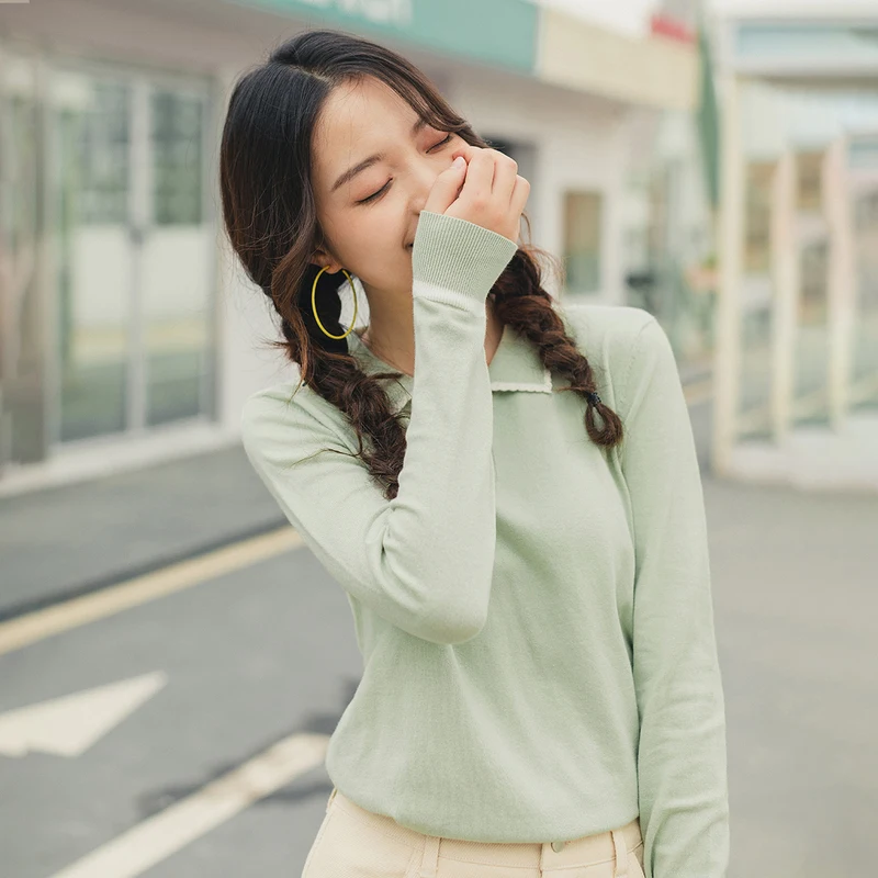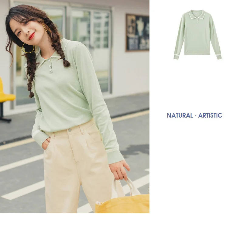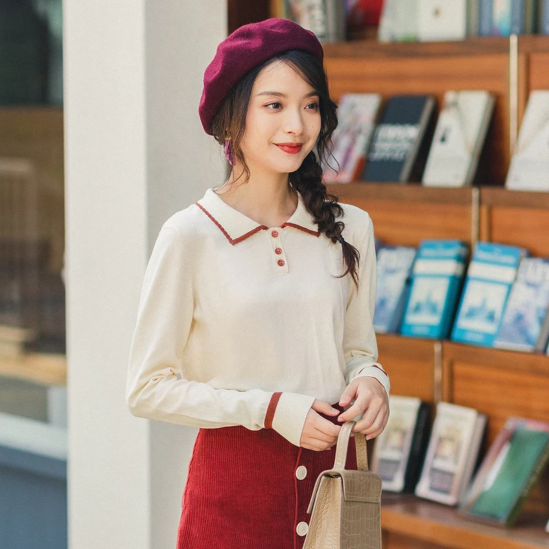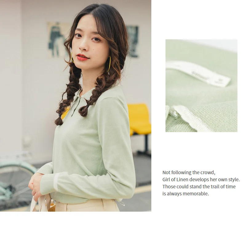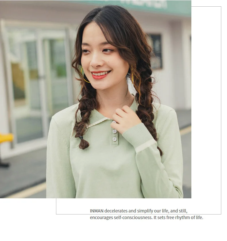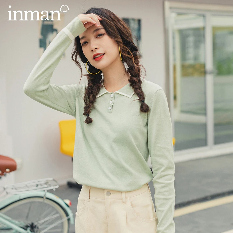 Inman 2020 Весна новое поступление литературный чистый и свежий ретро Grilish элегантный дизайн контраст Цвет Свободный вязаный пуловер