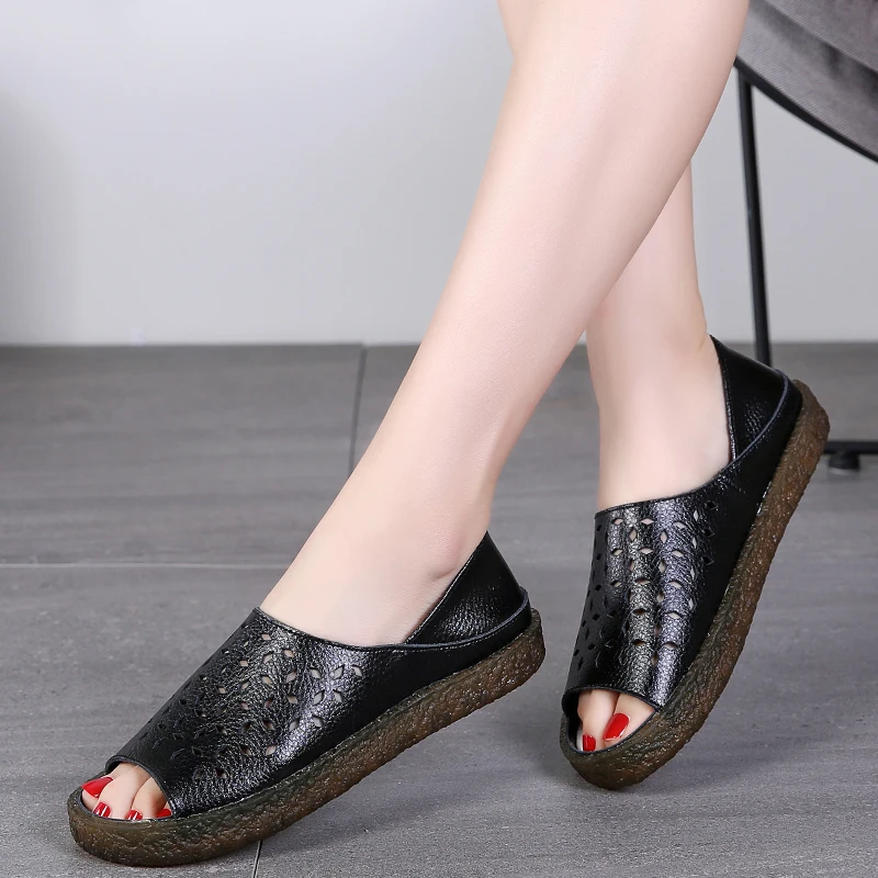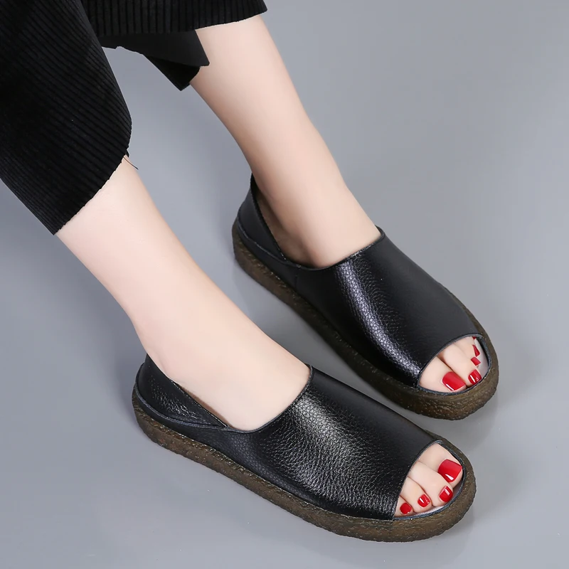 Новые женские босоножки; Модная плоские женские сандали обувь; Женские повседневные Шлепанцы из натуральной кожи; Большие размеры; Zapatos De Mujer