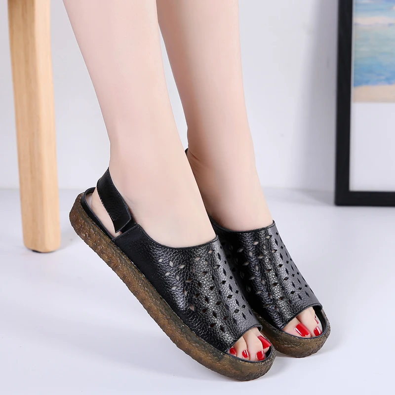 Большие размеры; женские босоножки; кожаная повседневная Летняя жен...