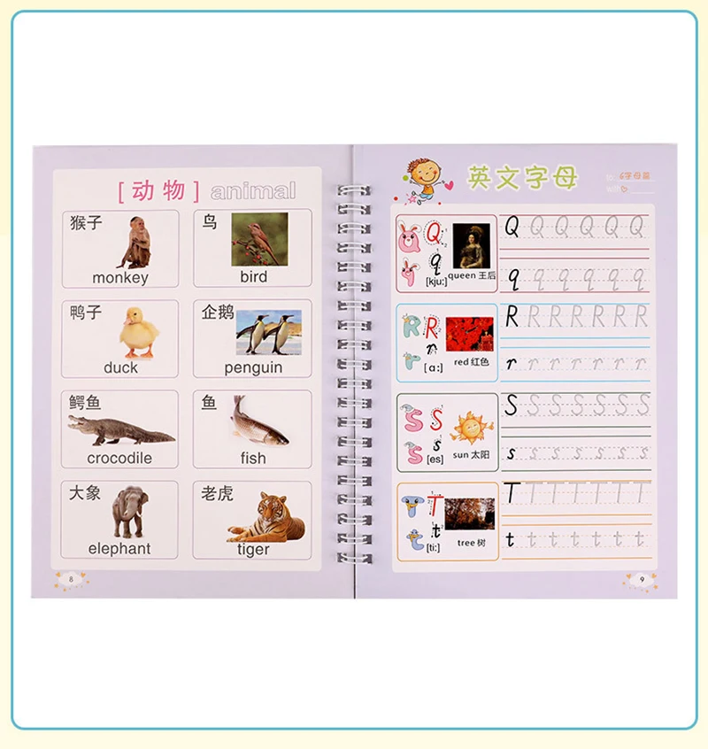 Примечание для покупателей: этот продукт обновлен и обновлен. Цвет внутренней страницы изменяется с фиолетового на розовый. Шрифт больше подходит детям для письма.