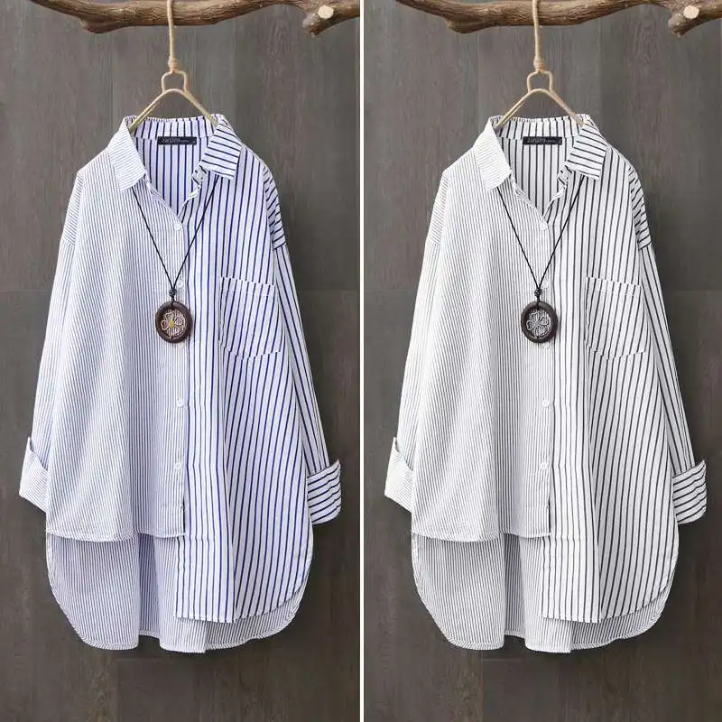 Асимметричная женская рубашка большого размера, элегантный полосаты...
