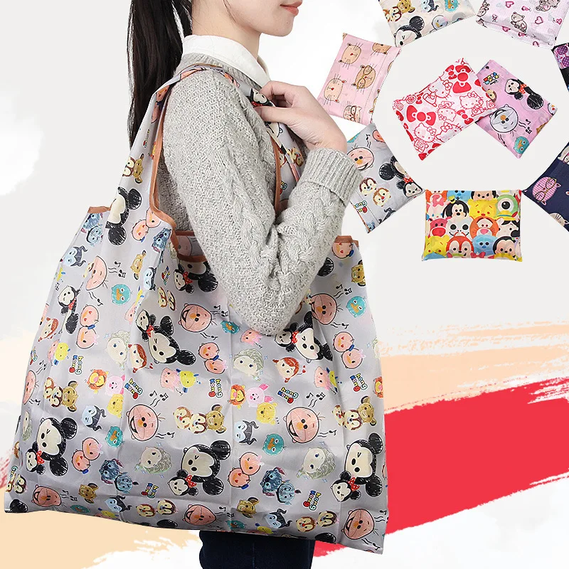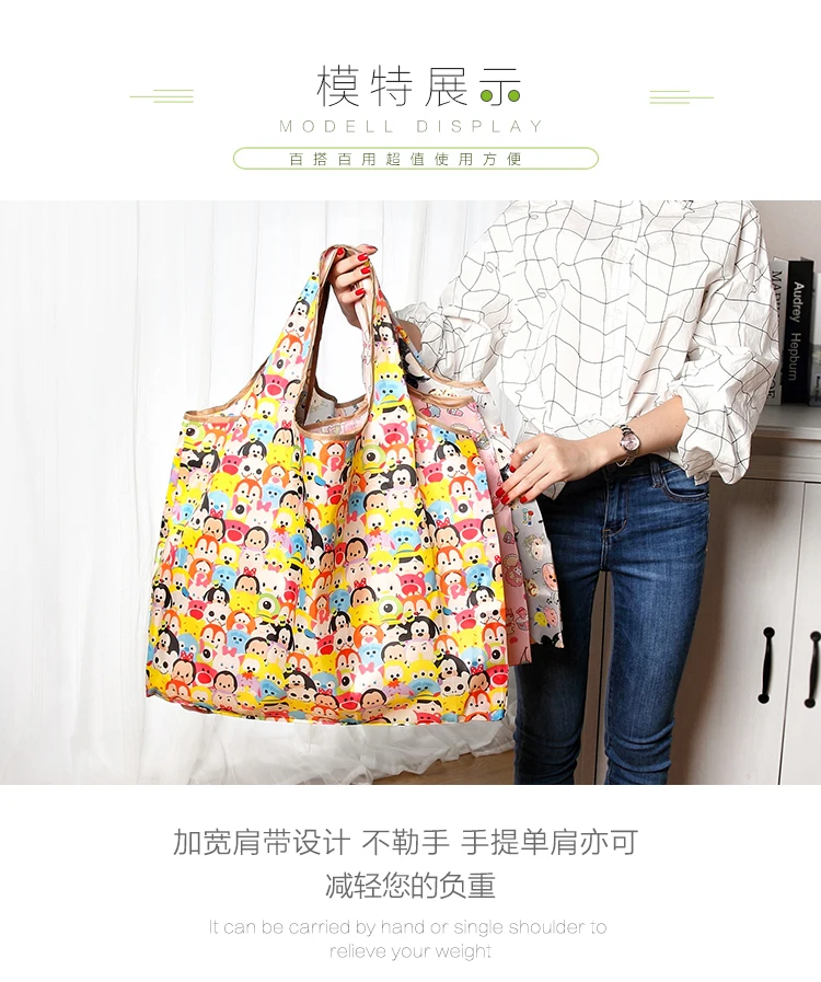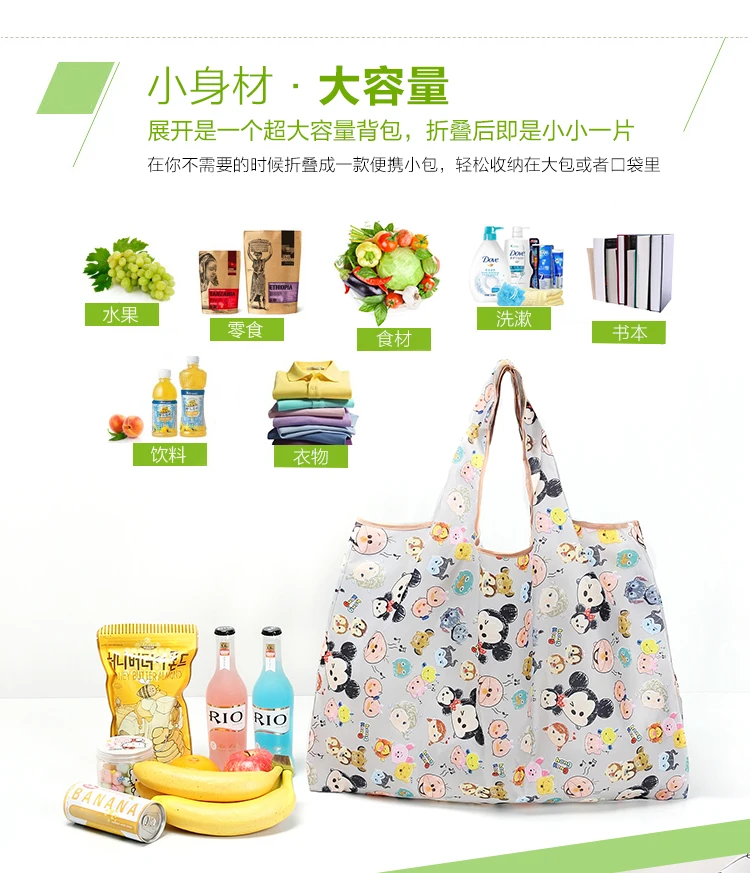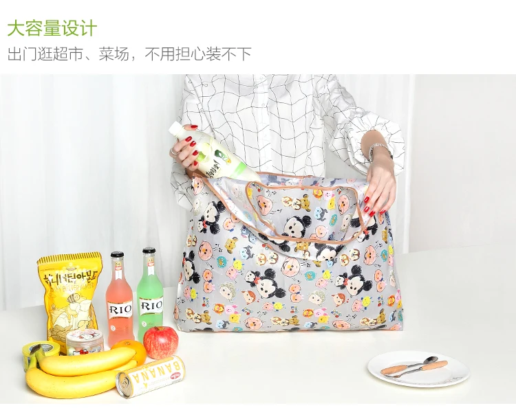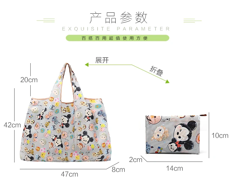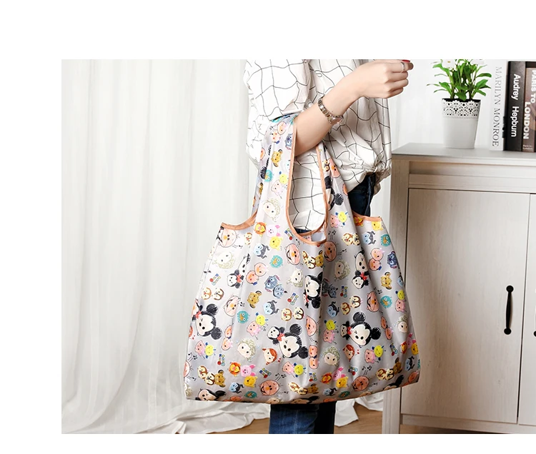 Складная сумка для покупок с мультипликационным изображением Диснея, сумка для хранения с Микки Маусом, вместительные сумки, Зеленая Сумка-тоут, сумка через плечо для девушек