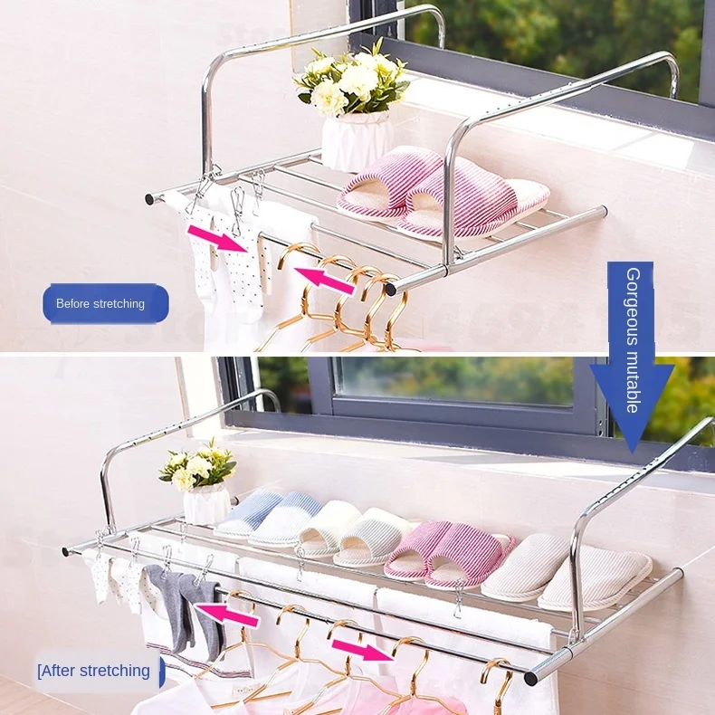 Многофункциональная Складная полка для сушки окон, подвесная сушилка из нержавеющей стали, Балконная Полка для сушки полотенец, лоскутных одеял