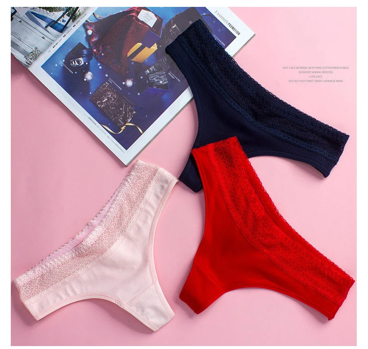 Стринги для женщин из хлопка, кружевное Сексуальное белье, женские ...