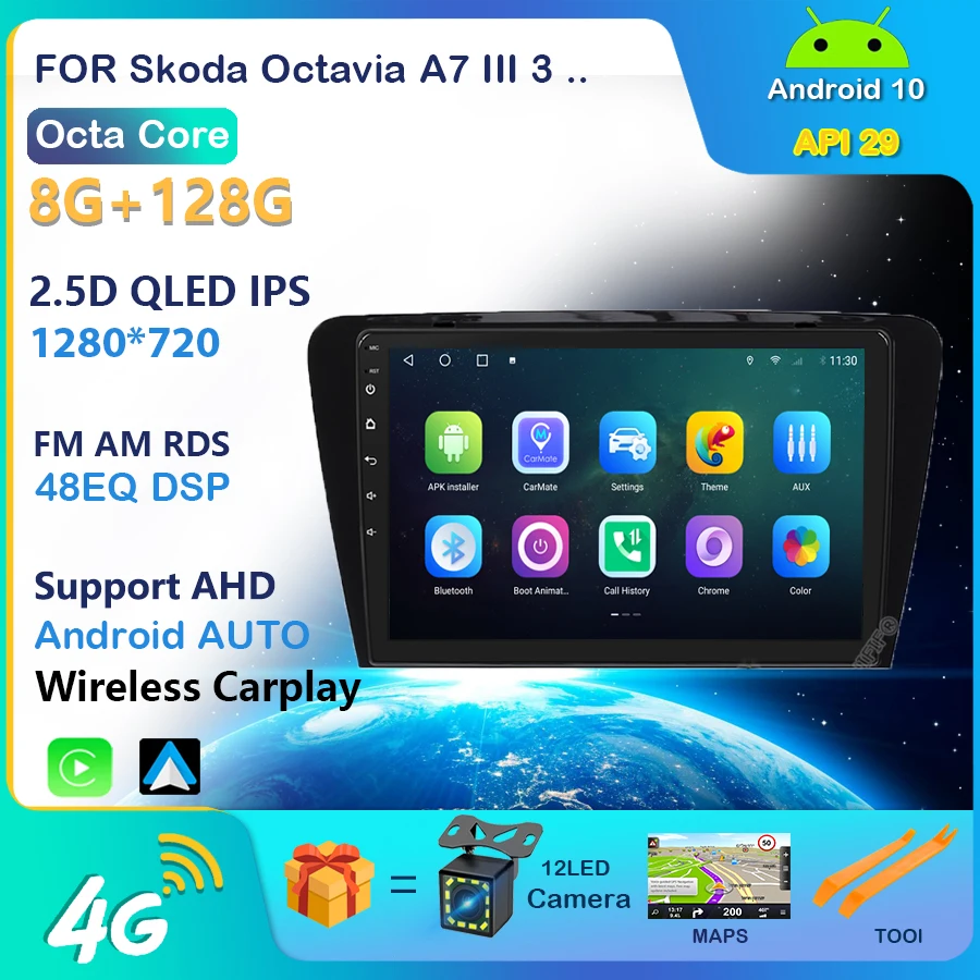 Автомобильный мультимедийный плеер 2DIN, 4 + 64 Гб DSP Carplay для Skoda Octavia A7 3 2014-2018, мультимедиа, радио, GPS, навигация, Android 10