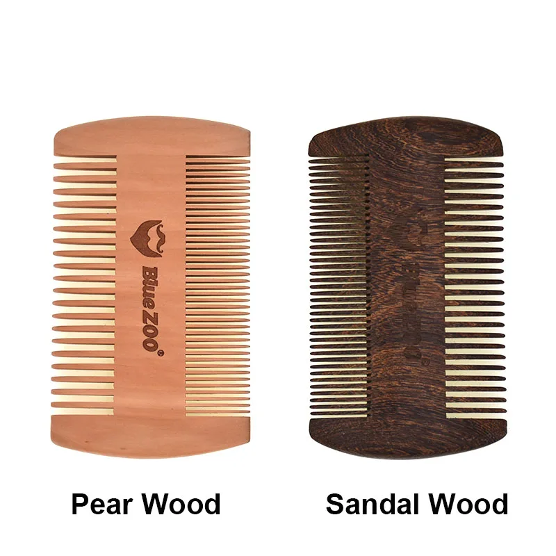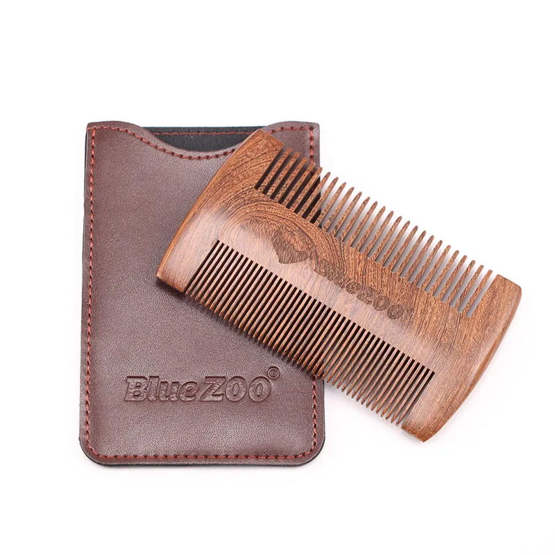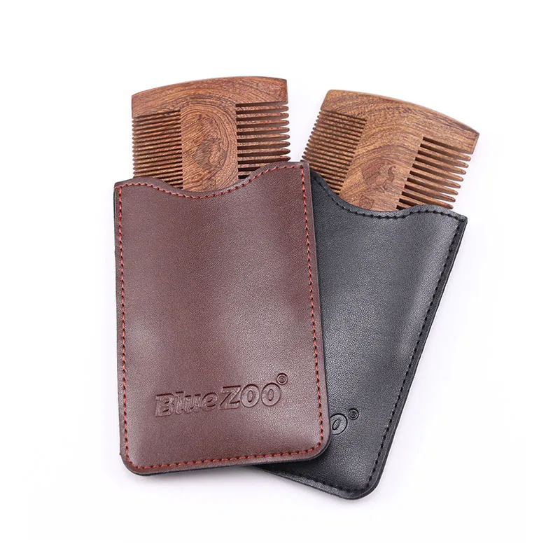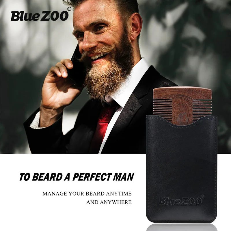 Гребень для бороды Blue ZOO из сандалового дерева, Мужской двухсторонний гребень для усов, мужская борода, выпрямляющие гребни, деревянная модная сумка, черный, коричневый