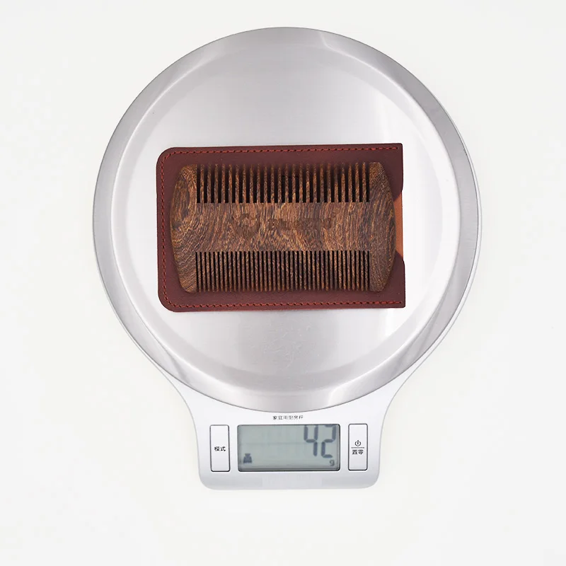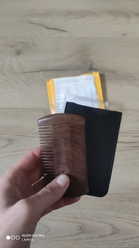 10/12 заказал, 22/12 получил. вещь добротная, увесистая. толщиной примерно 8/10мм. к зубцам сужается. дерево, или пластик под дерево разобрать не смог. в комплекте чехольчик из экокожи, или натуральной кожи тоже не понять. повреждений и царапин не обнаружил. как расчёска работает. двусторонняя, с одной стороны между зубцами расстояние ~2мм, с другой < 1мм. шикарная весчь! рекомендую!!! и на подарок мона...