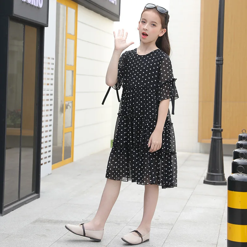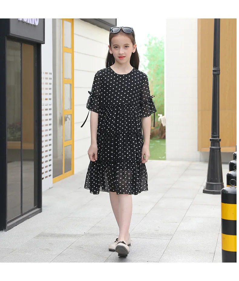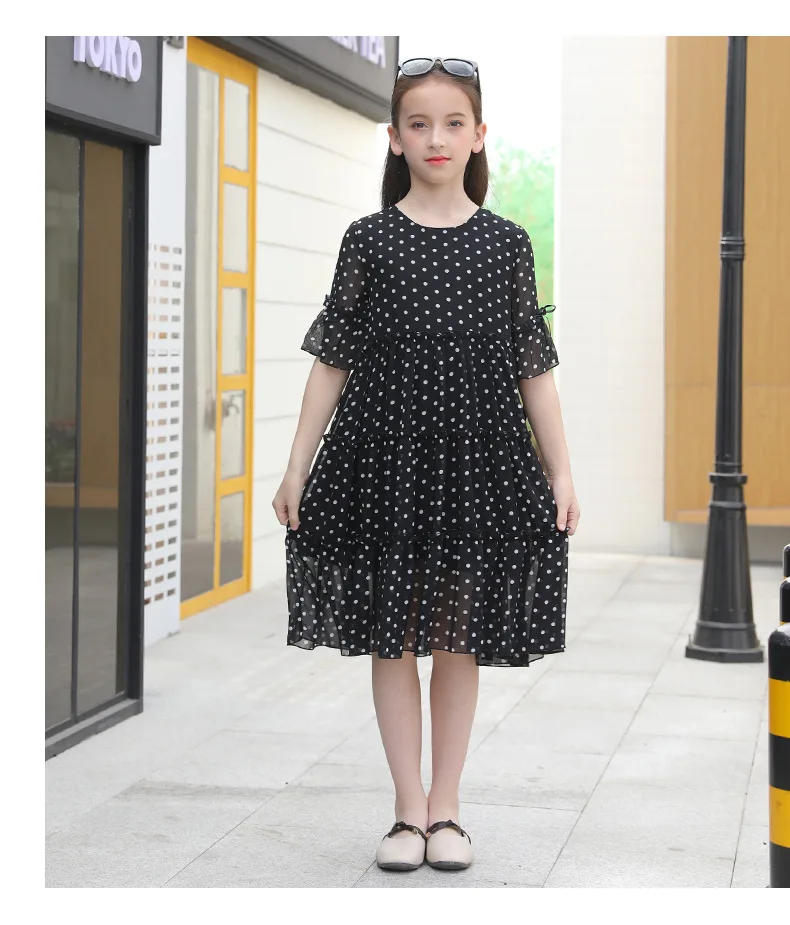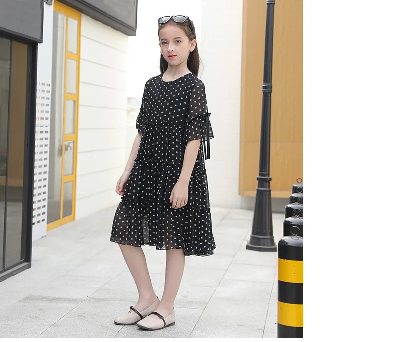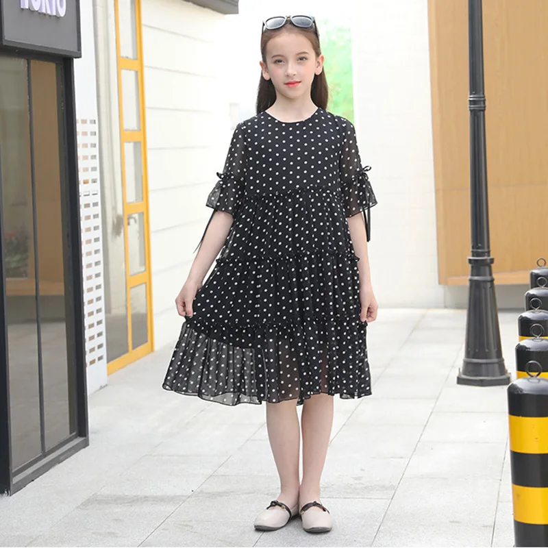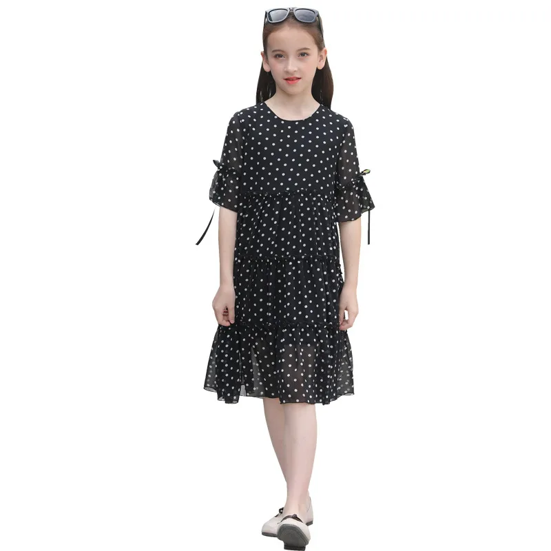 Детское летнее платье принцессы в горошек, на возраст 5, 8, 10, 12, 14, 16 лет