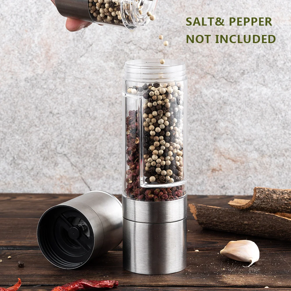Мельница для перца 2 в 1, ручная мельница для соли и перца с настра...
