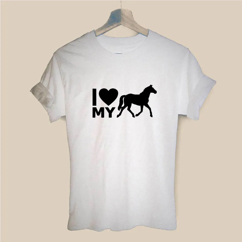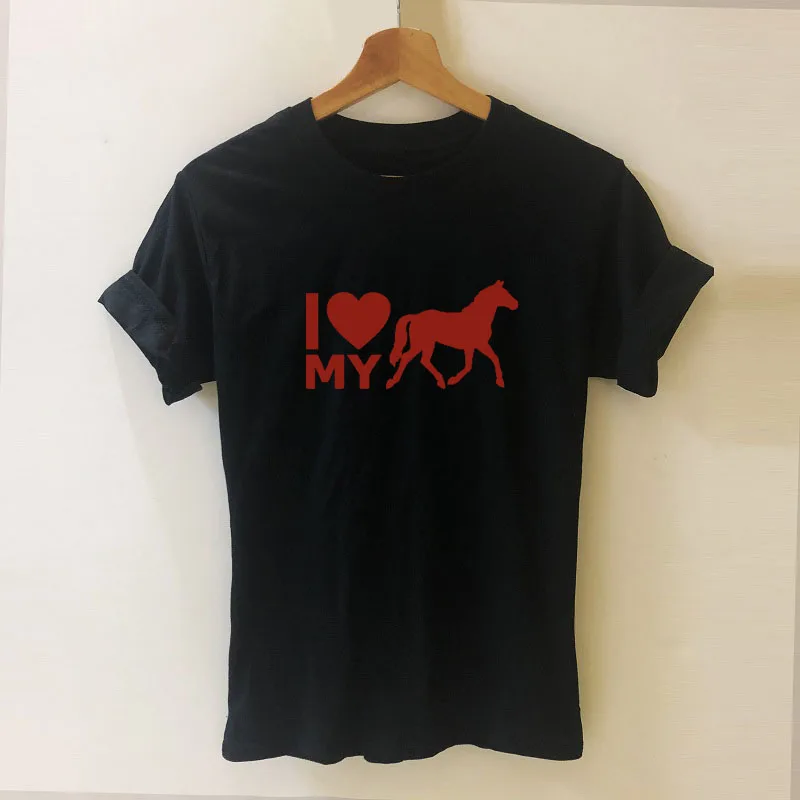 Футболка Harajuku с надписью Love Heart Horse, забавная футболка, женская одежда, повседневные топы с короткими рукавами, футболки размера плюс