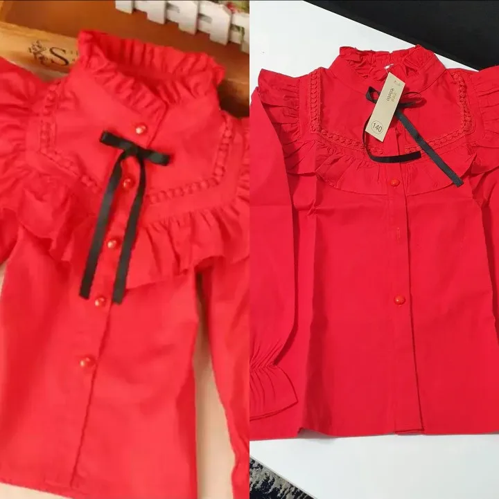 Номер моделиSpring Autumn Long Sleeve Bow Ruffles White Red School Girl Tops