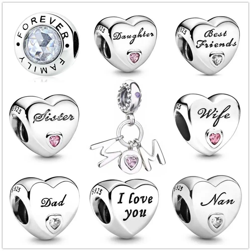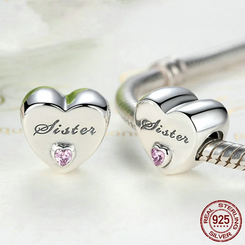 В форме сердца Sister для мам, дочерей, пап, драгоценные бусины, подходят к оригинальным, соответственные Европейской Пандоре обаятельные Серебро 925 браслет брелок ювелирные изделия для женщин аксессуары "сделай сам" для изготовления