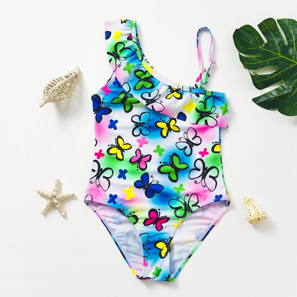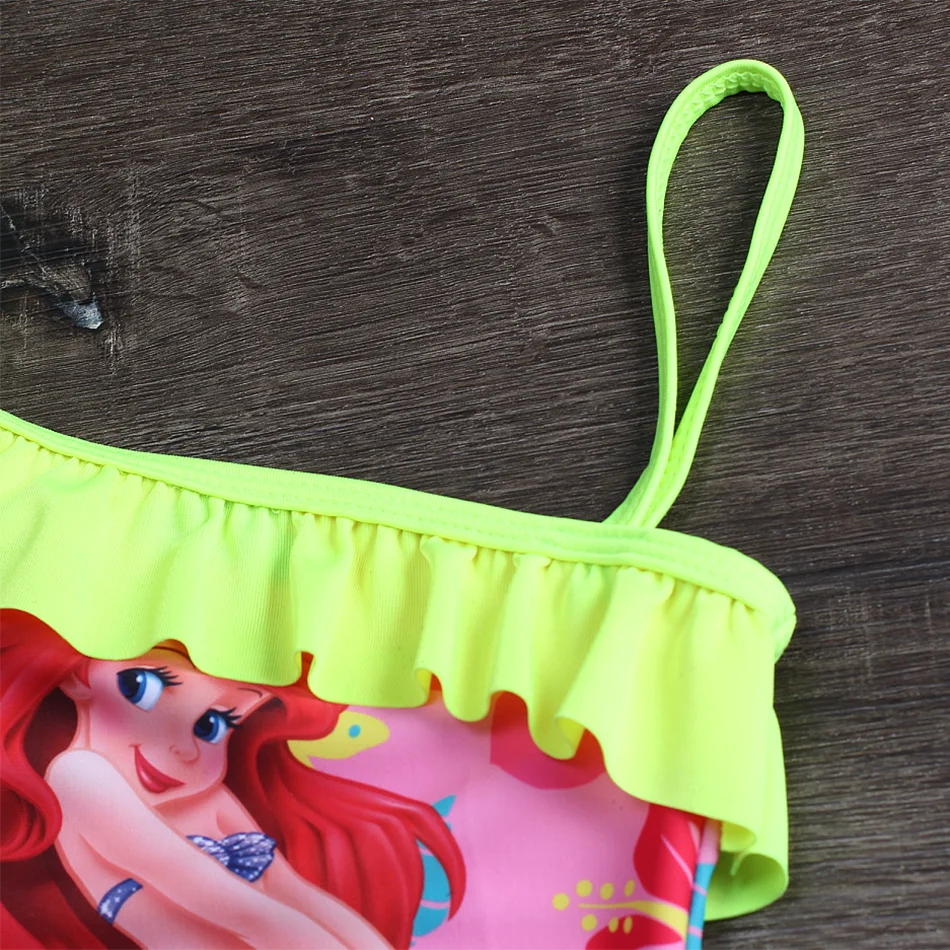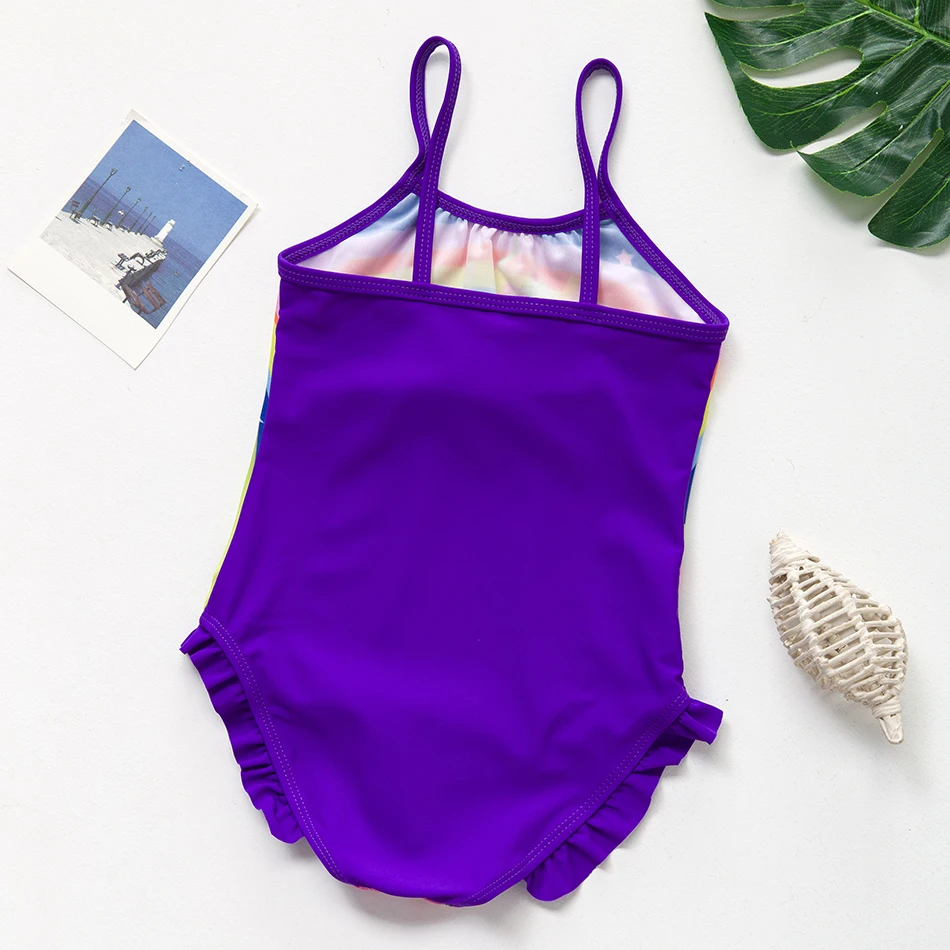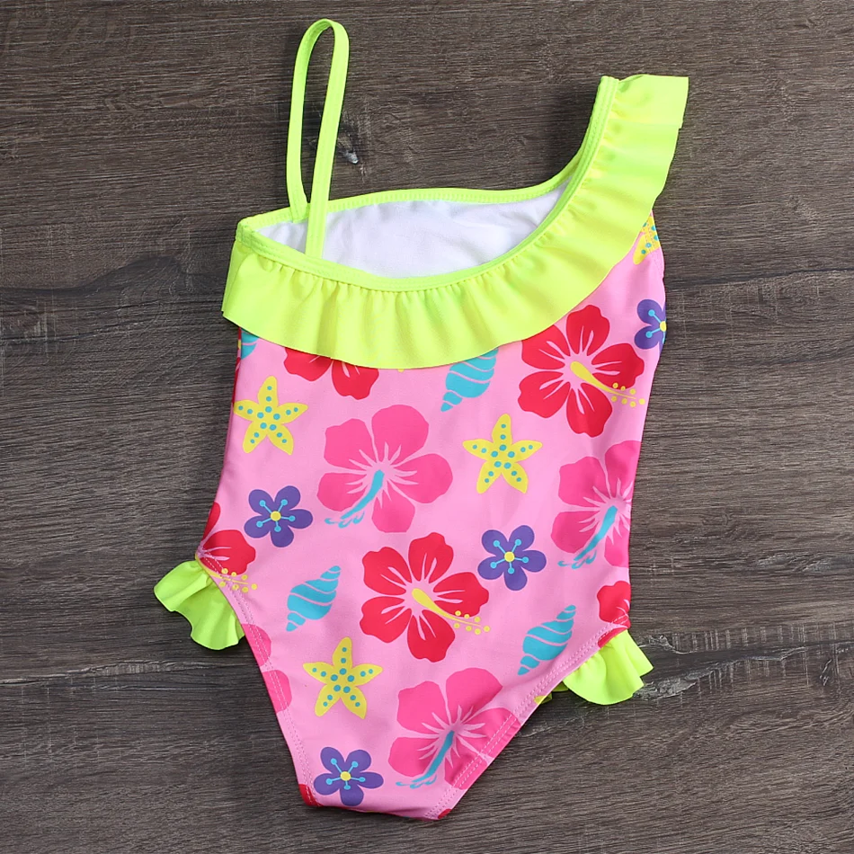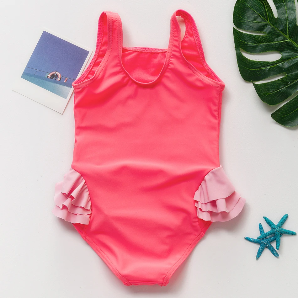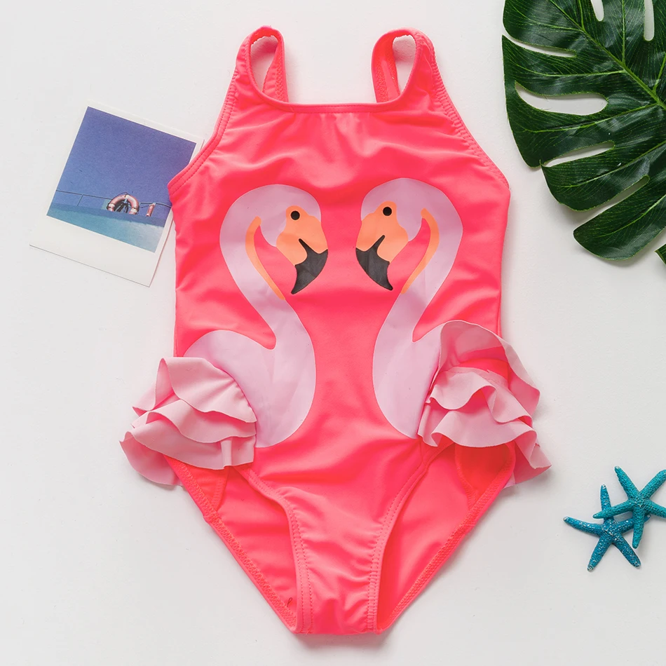 В 2019 году, новый цельный купальник для девочек с изображением фламинго и розовыми оборками от 2 до 8 лет, купальный костюм, пляжная одежда, купальный костюм 9021