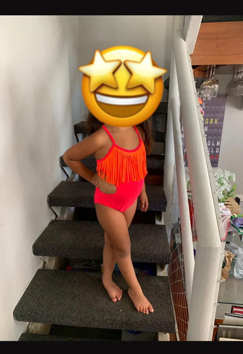 Купальник очень хорошего качества, швы ровные , нитки не торчат, но на пять лет размер 5-6 маловат! К заказу советую
