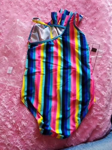 купальник красивый, яркий, качественно сушит. дочка 100см , и размер который мы купили 5-6 лет , оказался нам чуть большим. сейчас на дворе март, надеюсь до лета принцесса подрастет. и купальник будет хорош