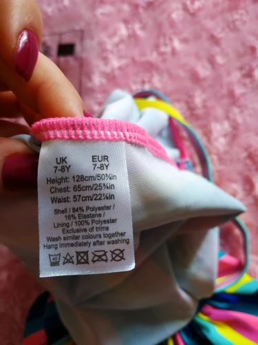 Купальник красивый, внутри есть подложка.Размер 8-9y подошёл на стройную девочку 7 лет, рост 125