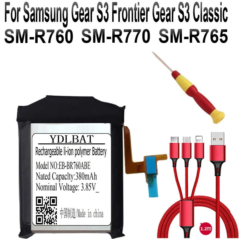 Аккумуляторная батарея eb br760, для Samsung Gear S3 Frontier Classic, с зарядным устройством, с зарядкой от USB, с зарядкой от USB, с зарядным устройством, с зарядным устройством, с разъемом, на 380380 мАч