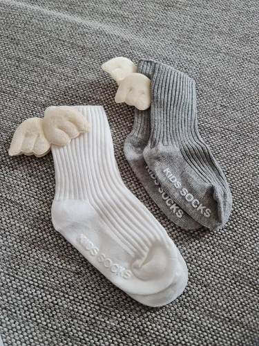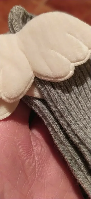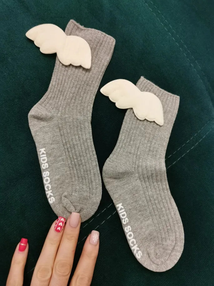 Носочки классные по качеству. Но коротковаты, за это снимаю звезду. На фото длиннее. А так прикольные, качественные, крылышки милейшие. Брала на подарок и на вырост своей дочке поэтому не знаю, как дела с размером обстоят.