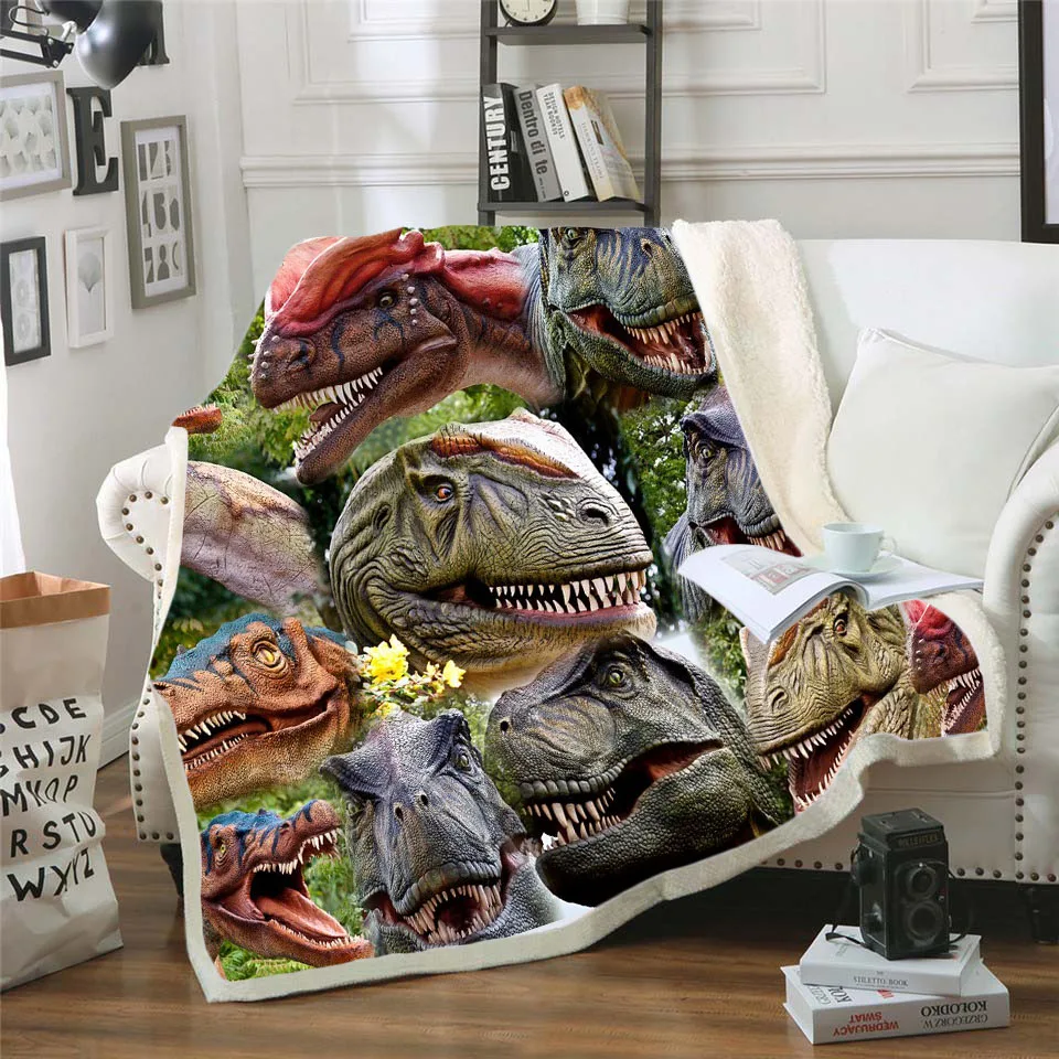 Пледы Одеяло динозавр Юрского периода 3D бархатное плюшевое одеяло ...