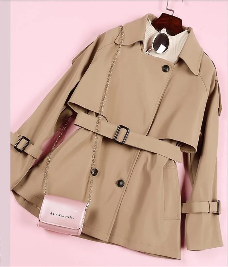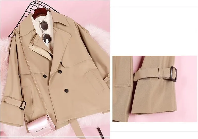 Женский двубортный тренчкот, Короткая Повседневная Верхняя одежда, модель 2020 на весну и осень, 3170