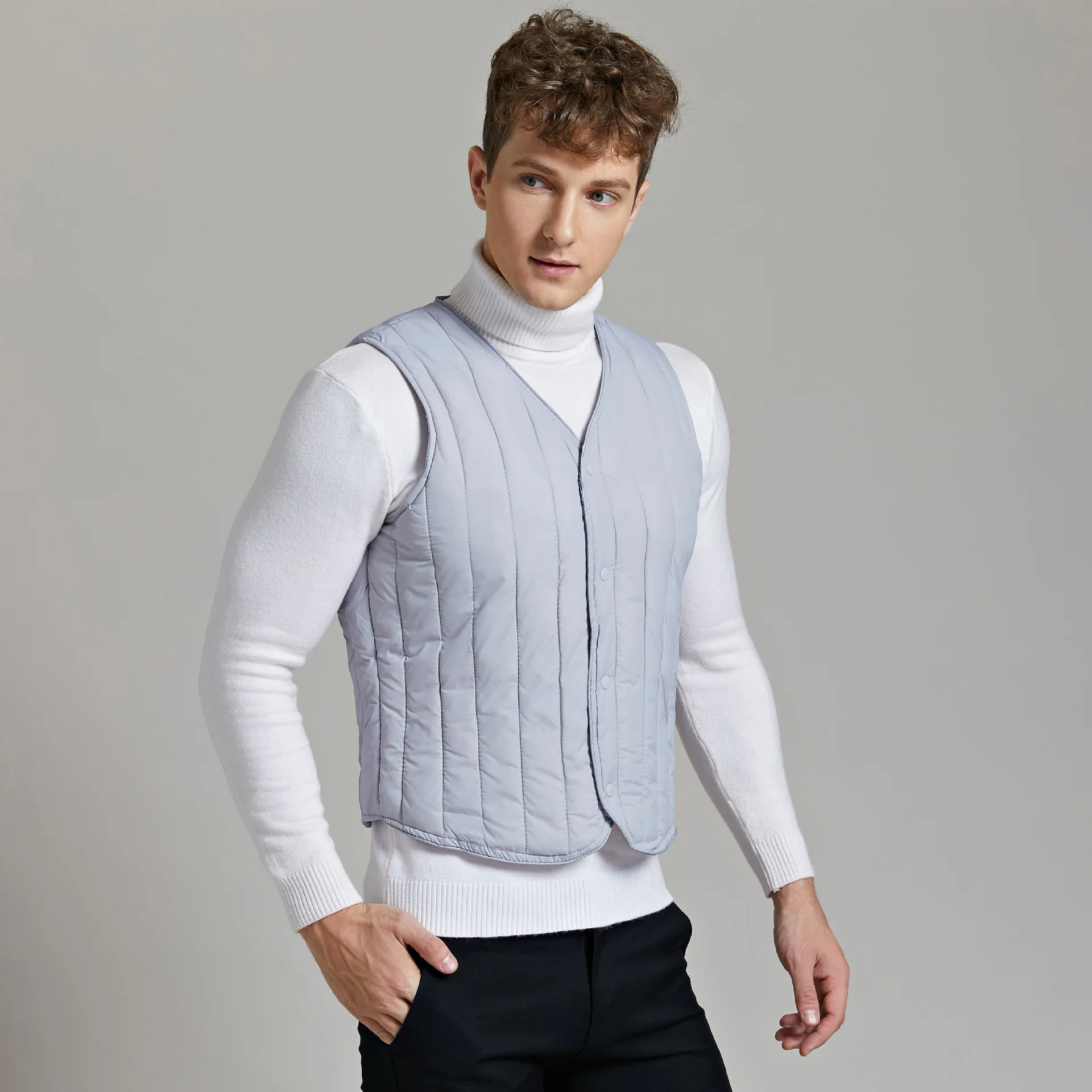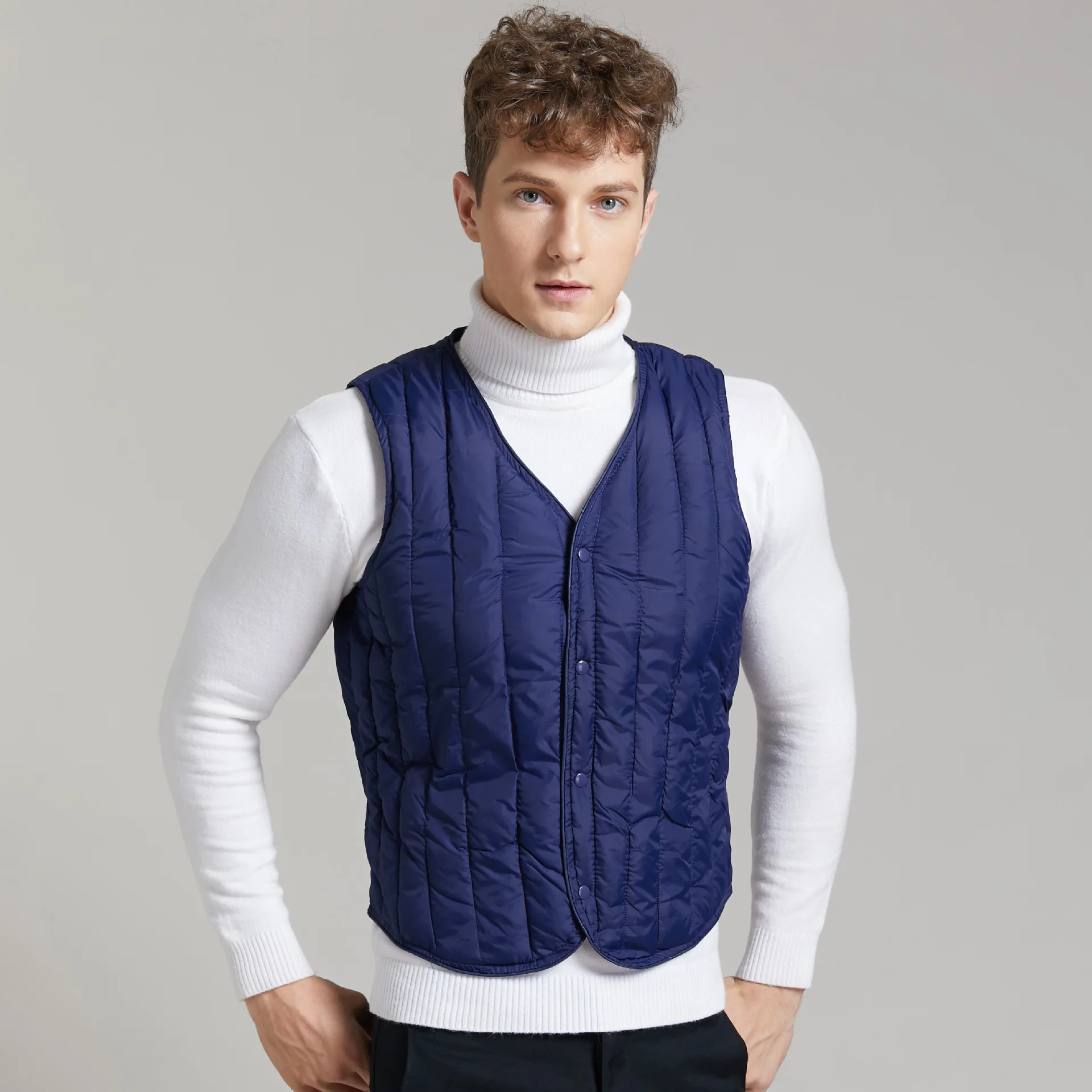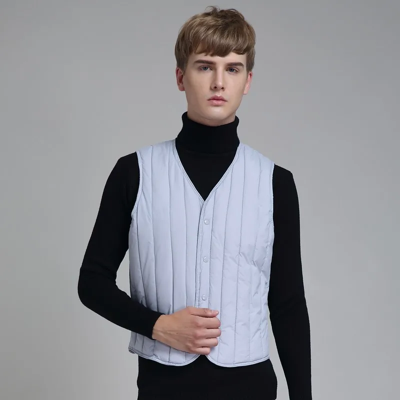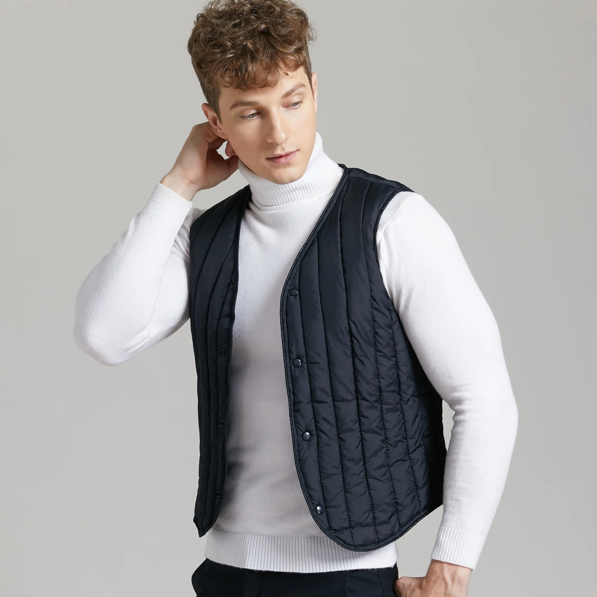 Стеганый жилет для мальчиков, мужской короткий плиссированный приталенный хлопковый жилет с V-образным вырезом, черная Повседневная теплая зимняя одежда, пальто без рукавов