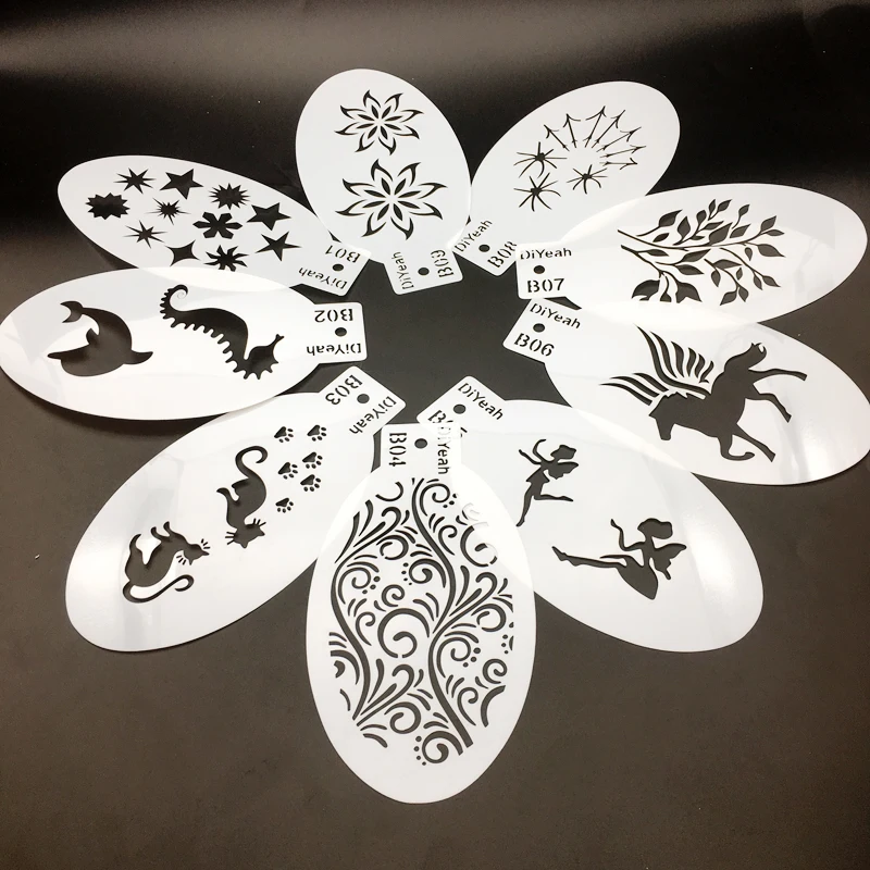 Трафареты для рисования лица, боди-арта, Хэллоуина, дня рождения, самодельные штампы для макияжа, Временные татуировки, многослойные трафареты, пластик, 9 шт.