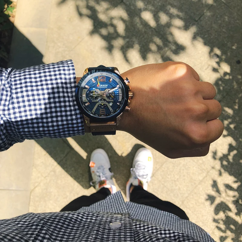 Популярные брендовые роскошные модные мужские военные часы CURREN с кожаным ремешком, кварцевые спортивные часы из сплава, деловые часы, мужские часы
