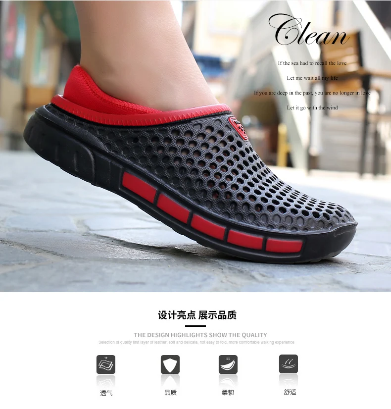 Мужская обувь, унисекс, Лето Тапочки с отверстиями, модные уличные кроссовки, дышащие повседневные пляжные сандалии для пар, шлепанцы, обувь, Тапочки